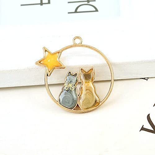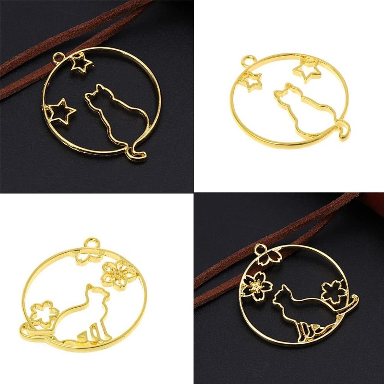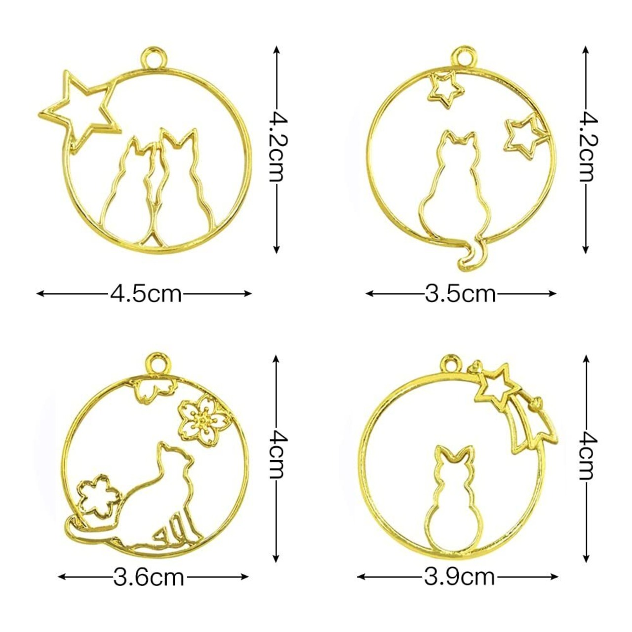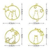 [サムコス] ゴールド ネコ 12個 セット レジン枠 空枠 フレーム パーツ カン付き ねこ ハンドメイド uvクラフト uvレジン 手作り DIY ペンダント キーホルダー アクセサリー フレーム (C)