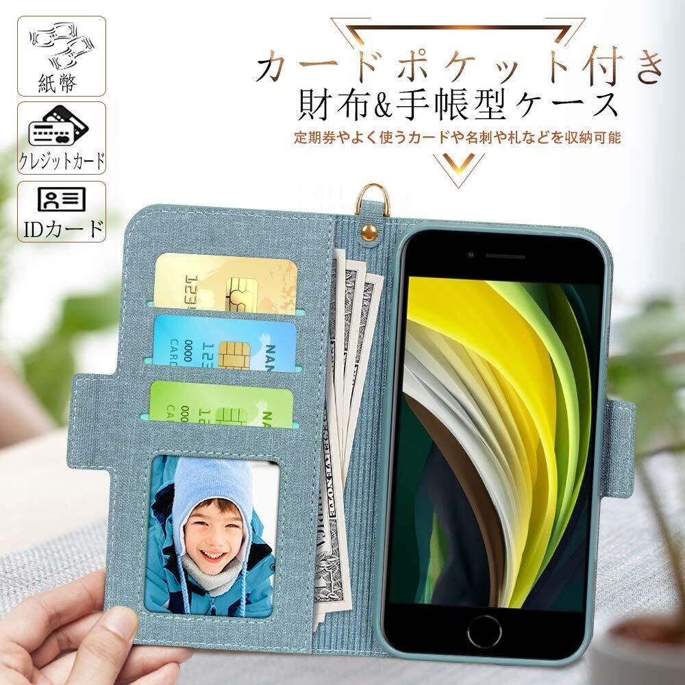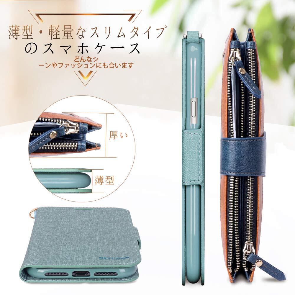 Skycase iPhone SE ケース 第3世代 2022 iPhone SE用ケース [第2世代] / iPhone8用 / iPhone7用 ケース [スキミング防止機能] PUレザー 手帳型 カード収納 スタンド機能 ストラップ付き 全面保護 耐汚れ 耐衝撃 4.7インチ 2022 新型 iPhone SE /iPhone8 /iPhone7 兼用 スマホケース ミントグリーン