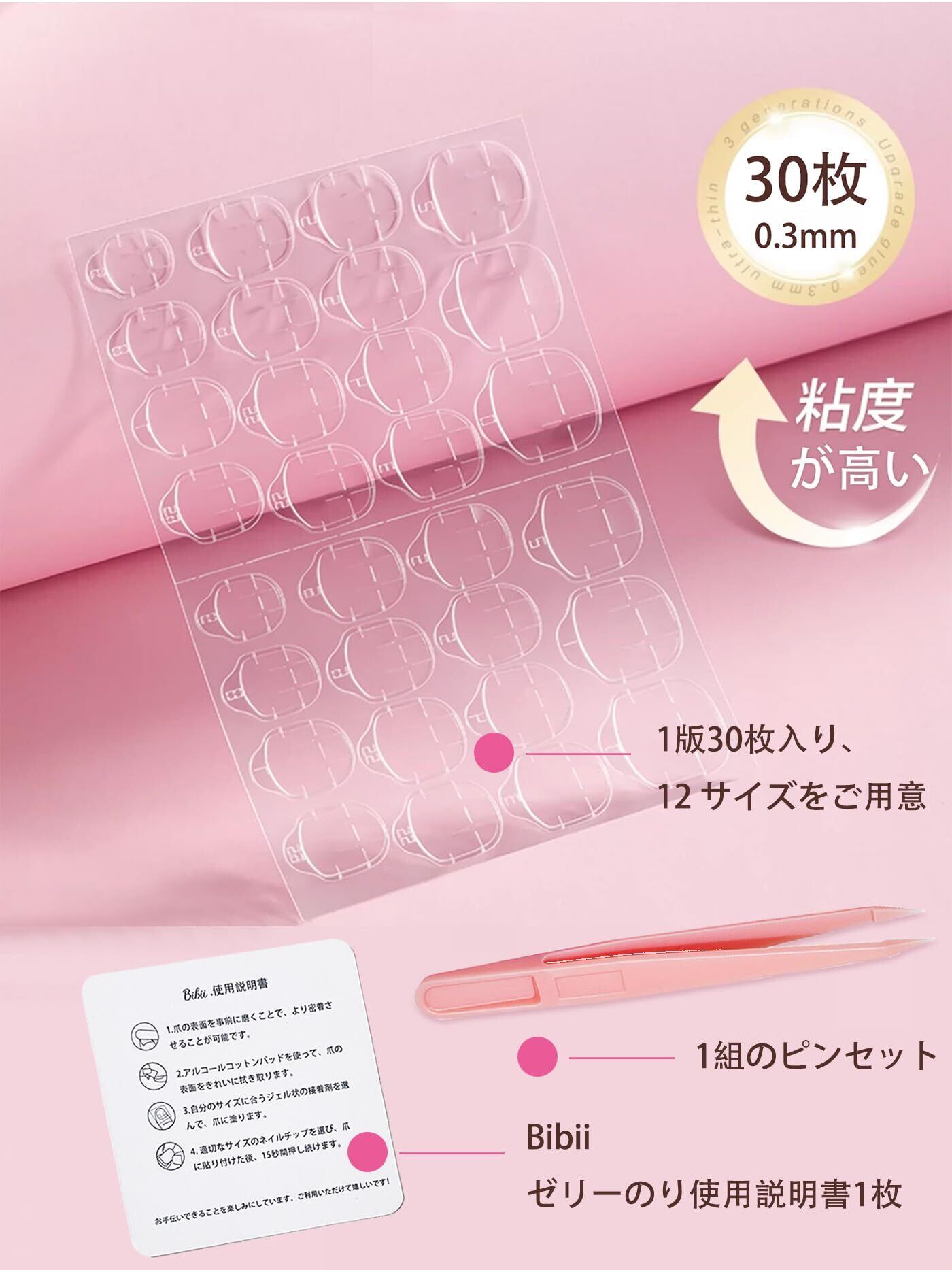 BIBII ネイル接着剤 爪用両面テープ 超強力 粘着 グミ ピンク 極薄 グミステッカー 12サイズ 30枚入り 付け爪 接着剤 ネイルチップ グミ nail glue で簡単装着 防水 透明 diyゼリーネイルアート 透明粘着グミ ゼリーネイルアート 幅広く多くの方にご利用頂けます 40枚セット (40個入り)