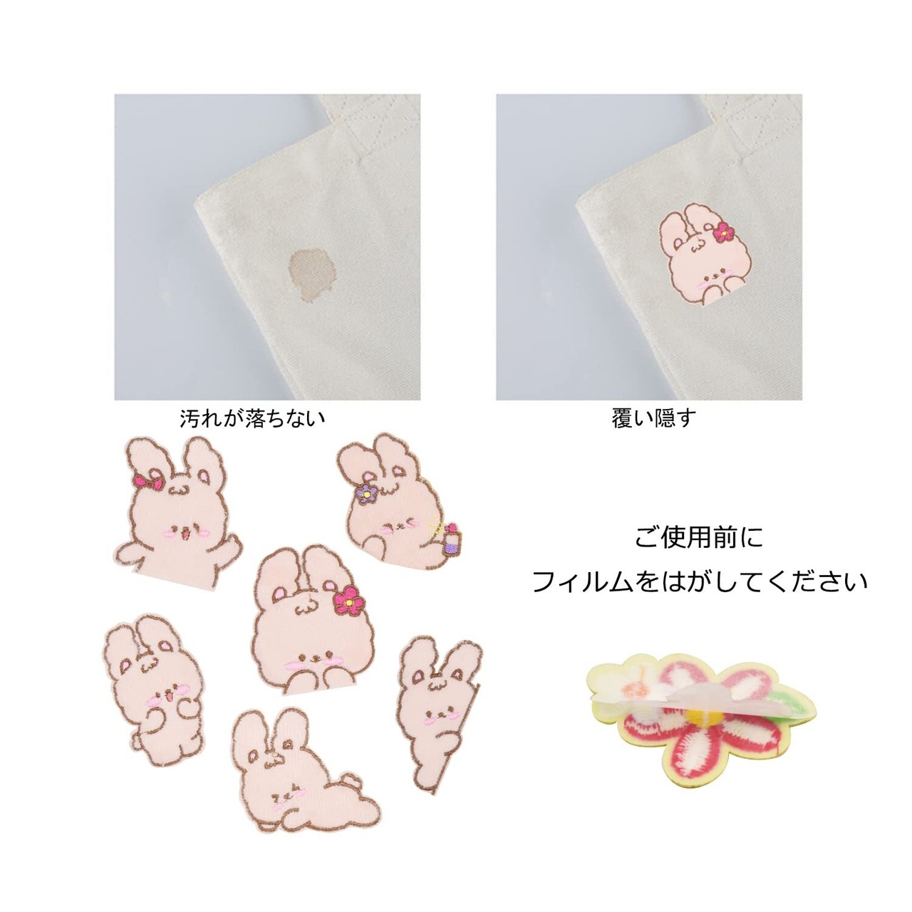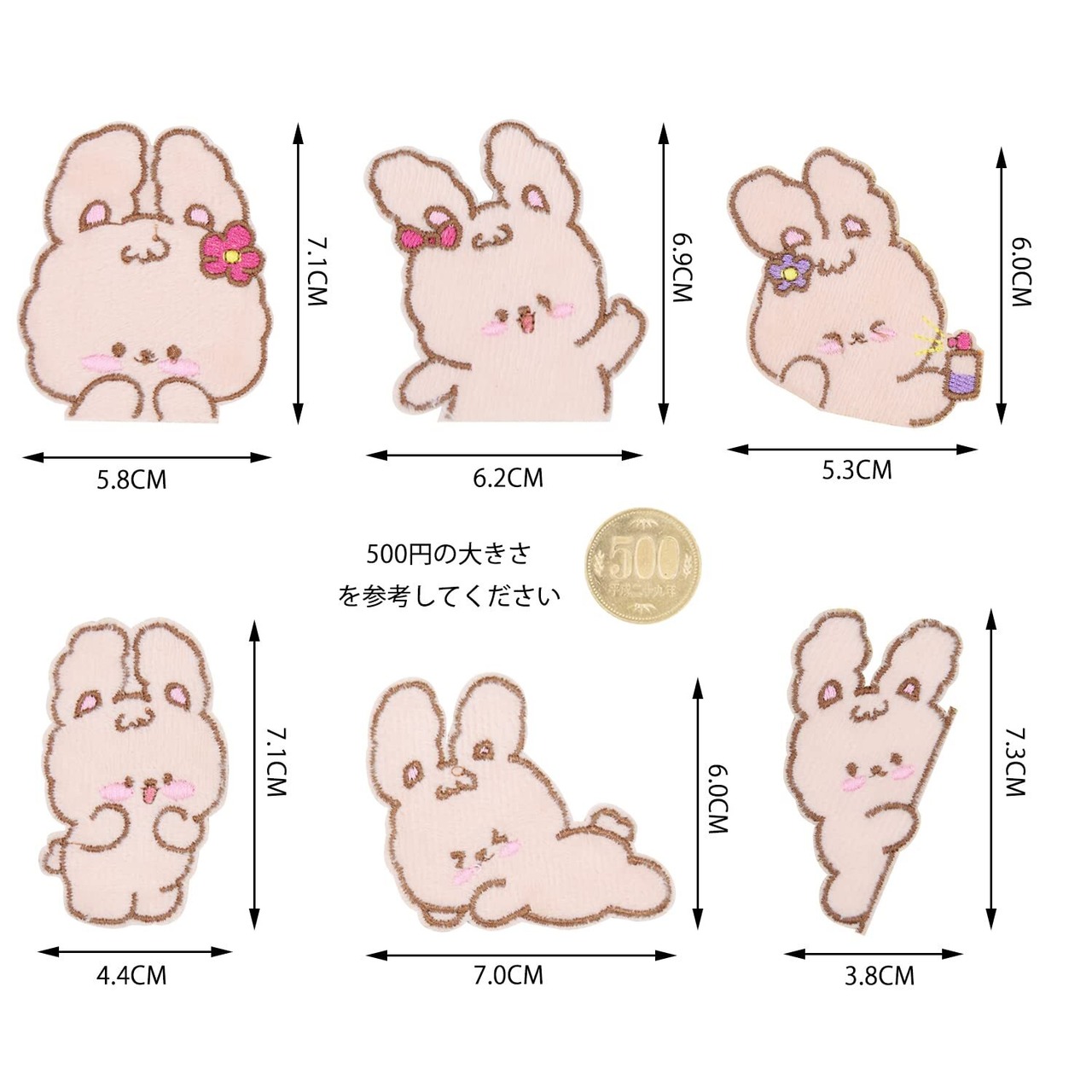 ワッペン アイロン刺繍 アップリケ DIY服 うさぎ カワイイ モチーフ 装飾 男の子 女の子 保育園 幼稚園 パッチ 補修 6枚セット 衣類 浴衣 手袋 手帳 飾り