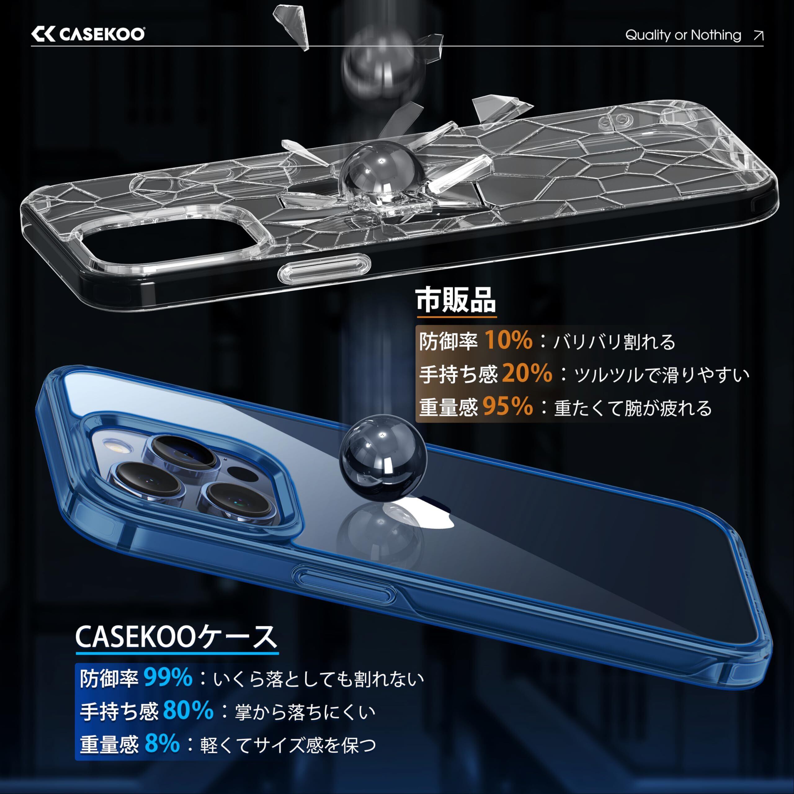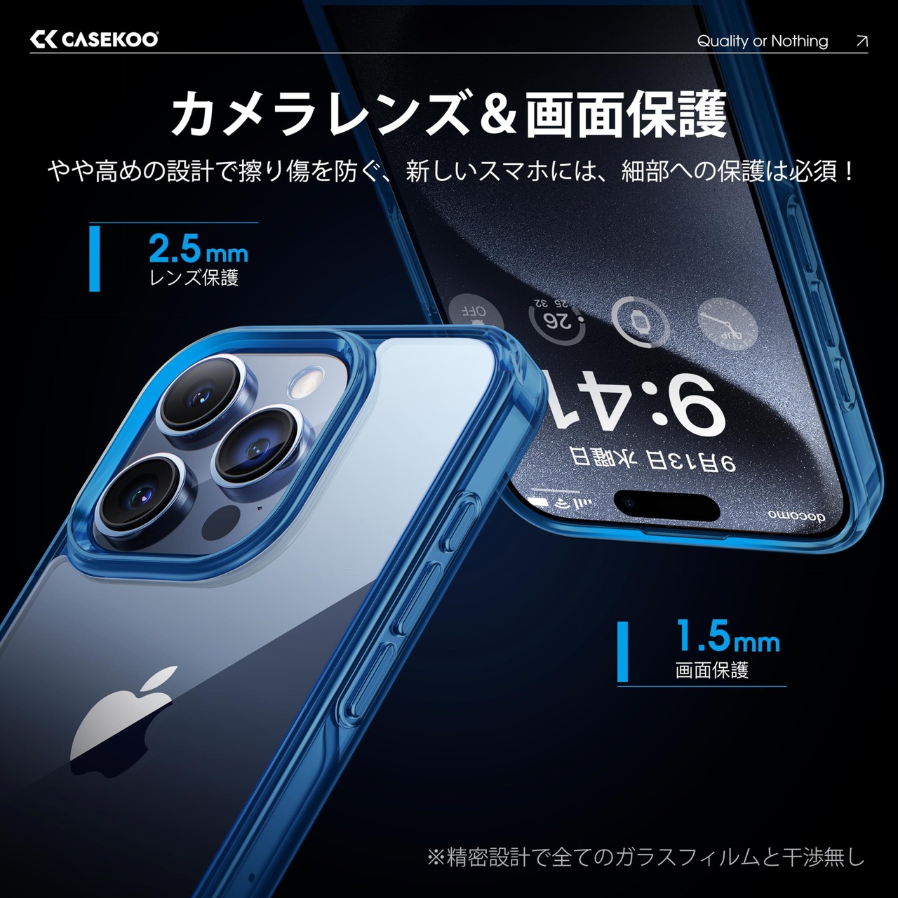 【極々透明感・2025年革新耐黄変技術】CASEKOO iPhone 15 Pro 用 ケース クリア 耐衝撃 米軍MIL規格 ストラップホール付き ワイヤレス充電対応 いPhone15Pro用ケース アイフォン15Pro用 ケース 6.1インチ「KORI 」(クリスタルブルー)