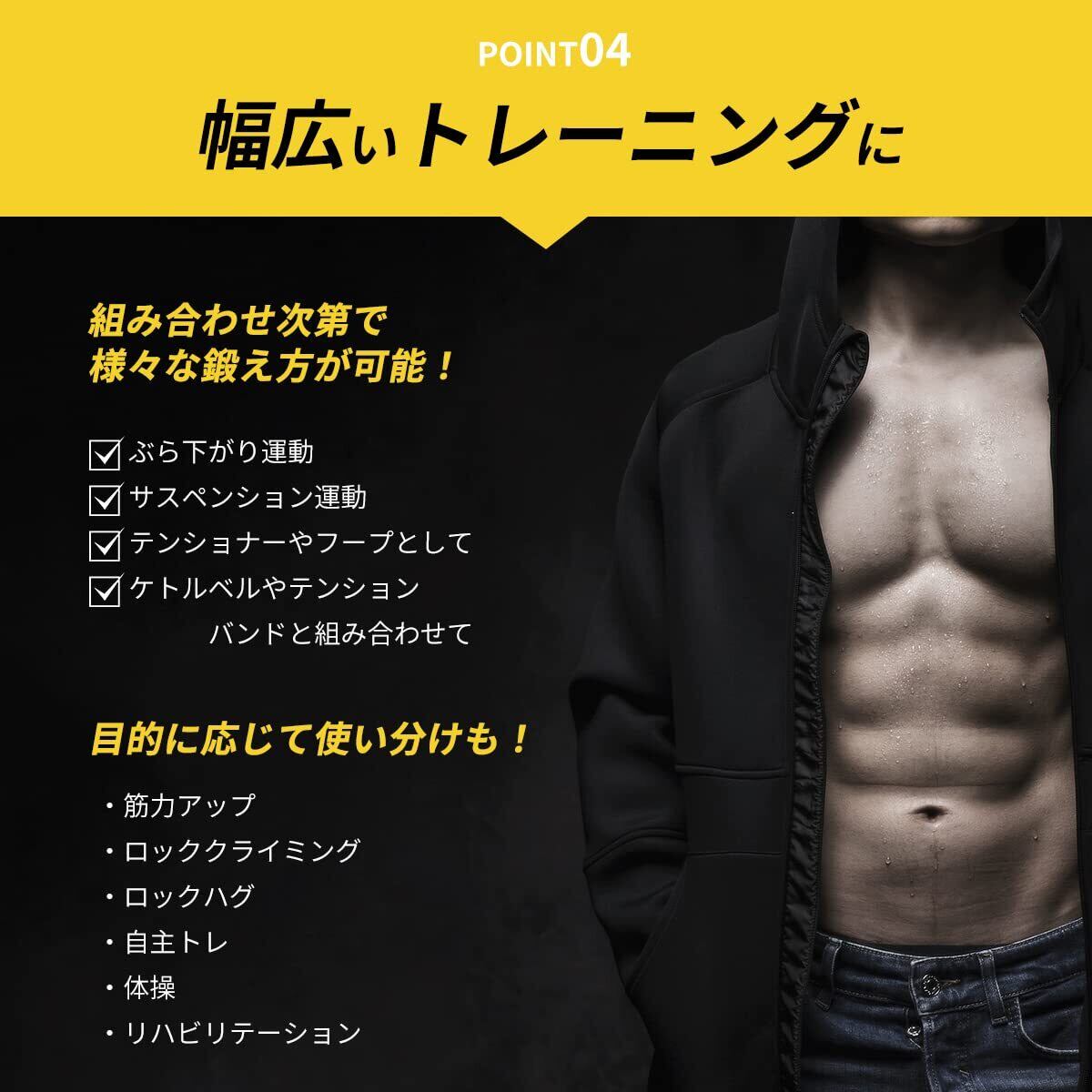 【幅広いトレーニングに対応】通常のぶら下がり運動やサスペンション運動のほか、テンショナーやフープとして、またケトルベルやテンションバンドと組み合わせて、筋力アップや引っ張りなどのコンビネーショントレーニングも可能です。ロッククライミング、ロックハグ、自主トレ、体操、リハビリテーションに最適です。
