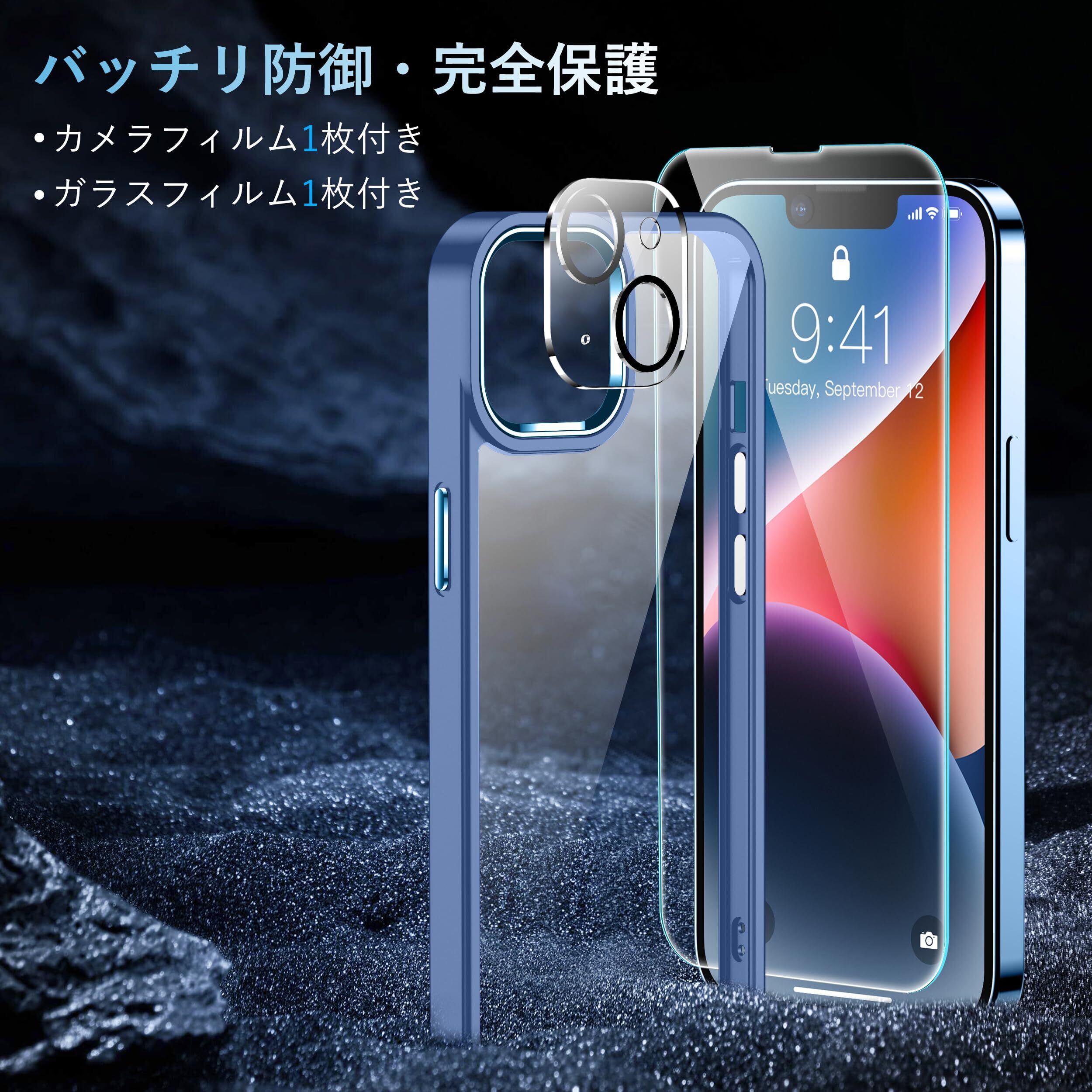 iPhone14 ケース ブルー カメラレンズ保護付き 耐衝撃 黄ばみ防止 アイフォン14ケース 米軍MIL規格 耐久性 SGS認証 アイホン14 スマホケース ワイヤレス充電対応 あいふぉん14 カバー 6.1インチ