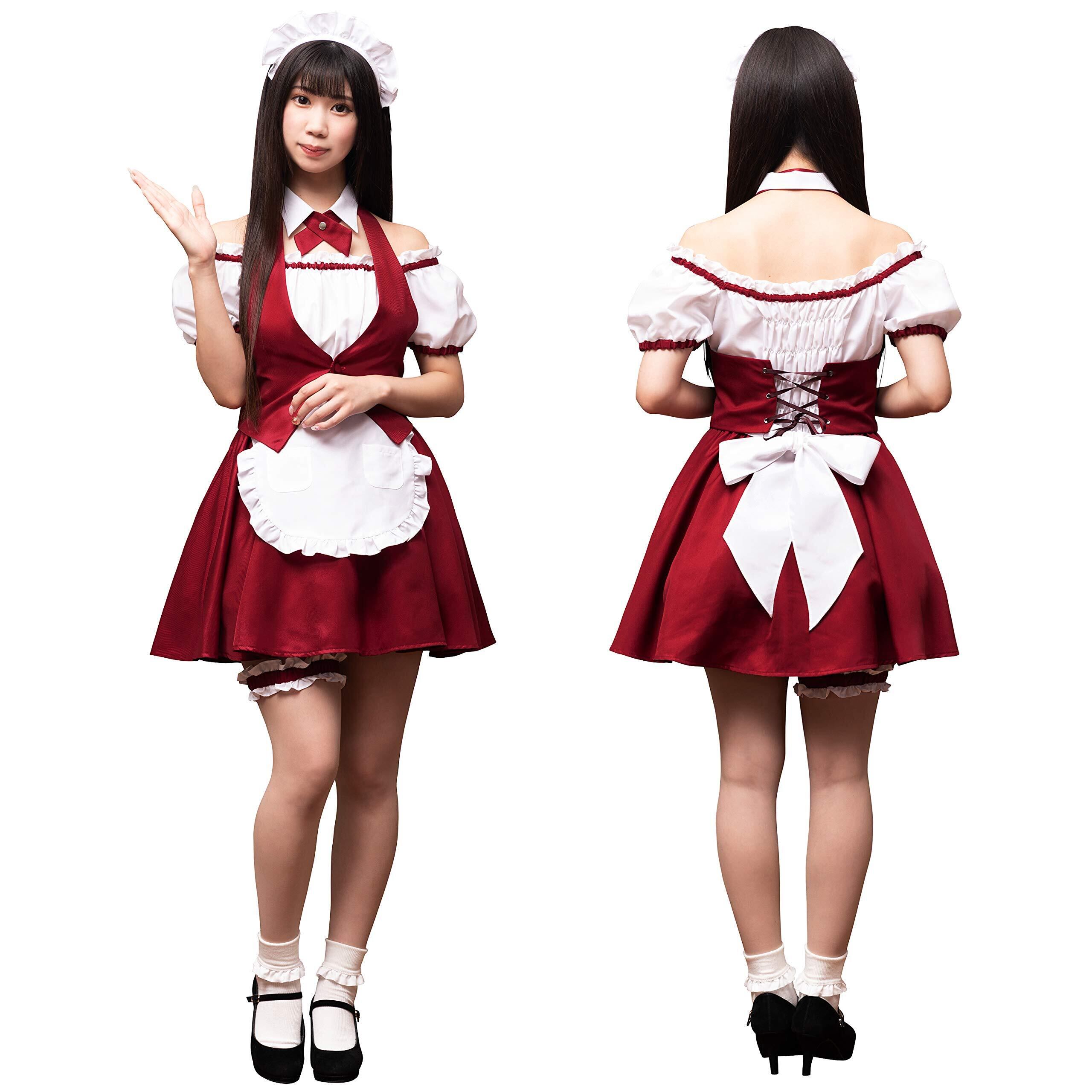 クリアストーン(Clearstone) コスプレ ハロウィン レトロ喫茶メイド レディース レッド