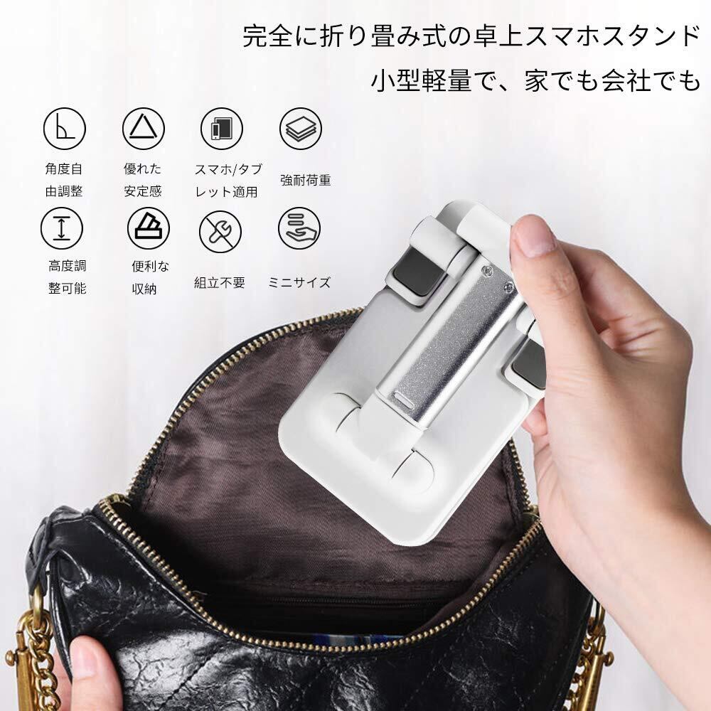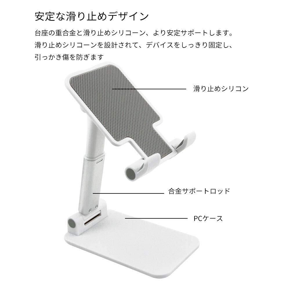 スマホスタンド タブレットスタンド 卓上 高度調整可能 スマホとタブレット置き用ホルダー 折り畳み式 軽量 小型 携帯 iPhone/iPad/Android/Kindle(4-11インチ)などに対応 ホワイト