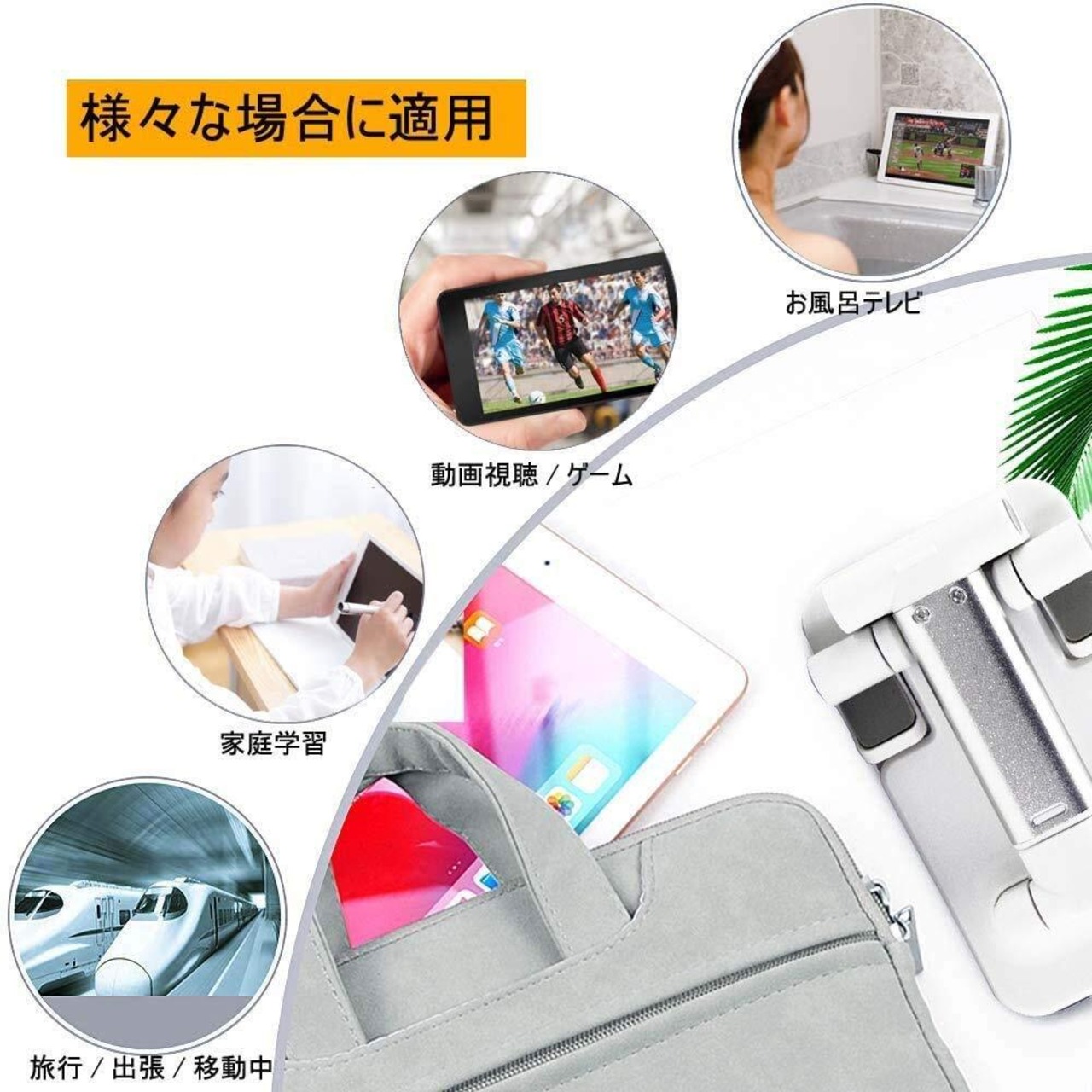 【幅広い互換性 】この携帯スタンド4-11インチのタブレット、スマホに対応できます。Kindle、iPhone、iPad、Androidなど、さまざまなデバイスに対応しています。保護ケースを取り付ける際、厚さが12mm以下の場合はブラケットに取り付けることができます。 注:タブレットで使用する場合は、水平に置くことをお勧めします。