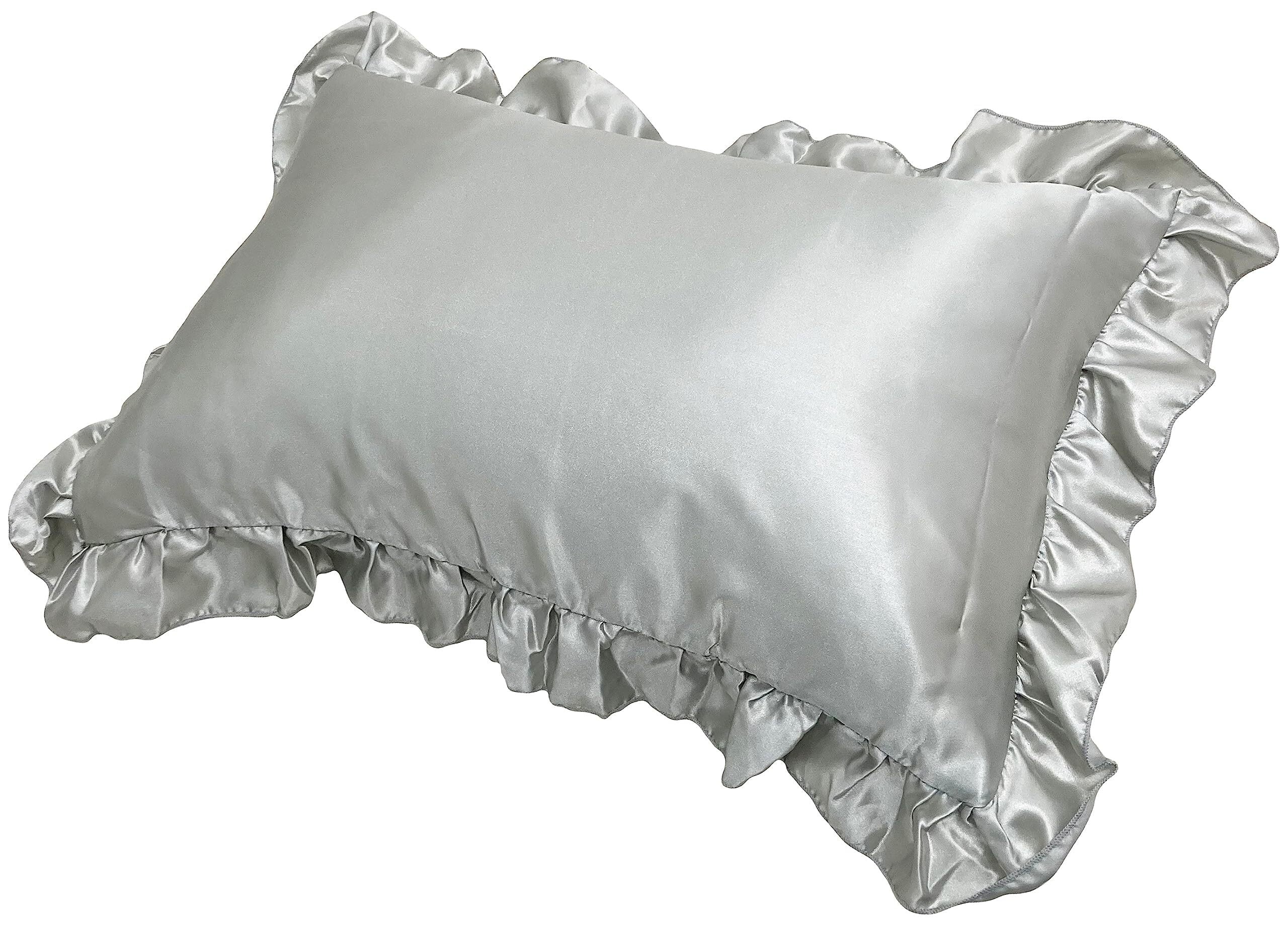 MORIPiLO シルク 枕カバー 43 63 洗える (洗濯機可) シルクタッチ フリル付き 両面 silk pillow case 可愛い ファスナー式 (シルバーグレー 43x63cm) まくらのモリシタ 4621159 | yankees