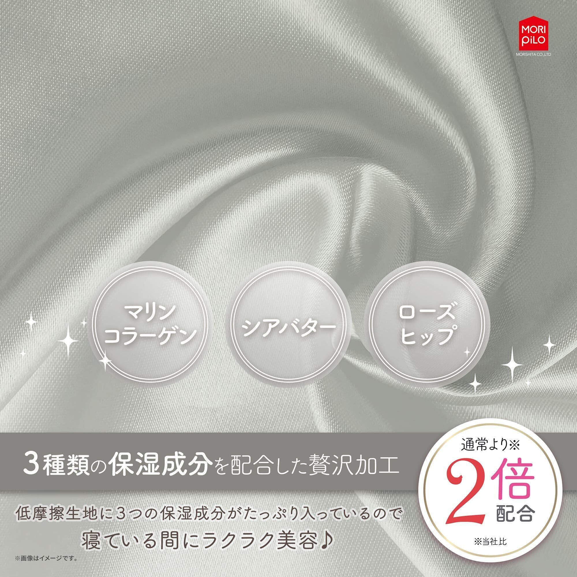 ●低摩擦生地に3つの保湿成分(マリンコラーゲン・シアバター・ローズヒップ)がたっぷり入って、髪とお肌にやさしい枕カバーです。