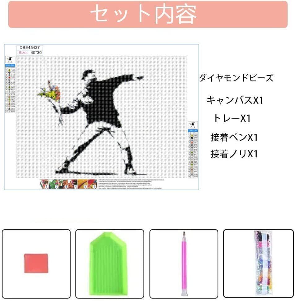 バンクシー5DダイヤモンドアートDIY・手作り絵画手芸キットモザイクアート芸術品 装飾全面貼り付けタイプ ハンドメイド かわいい(30x40cm,男の子ー横)