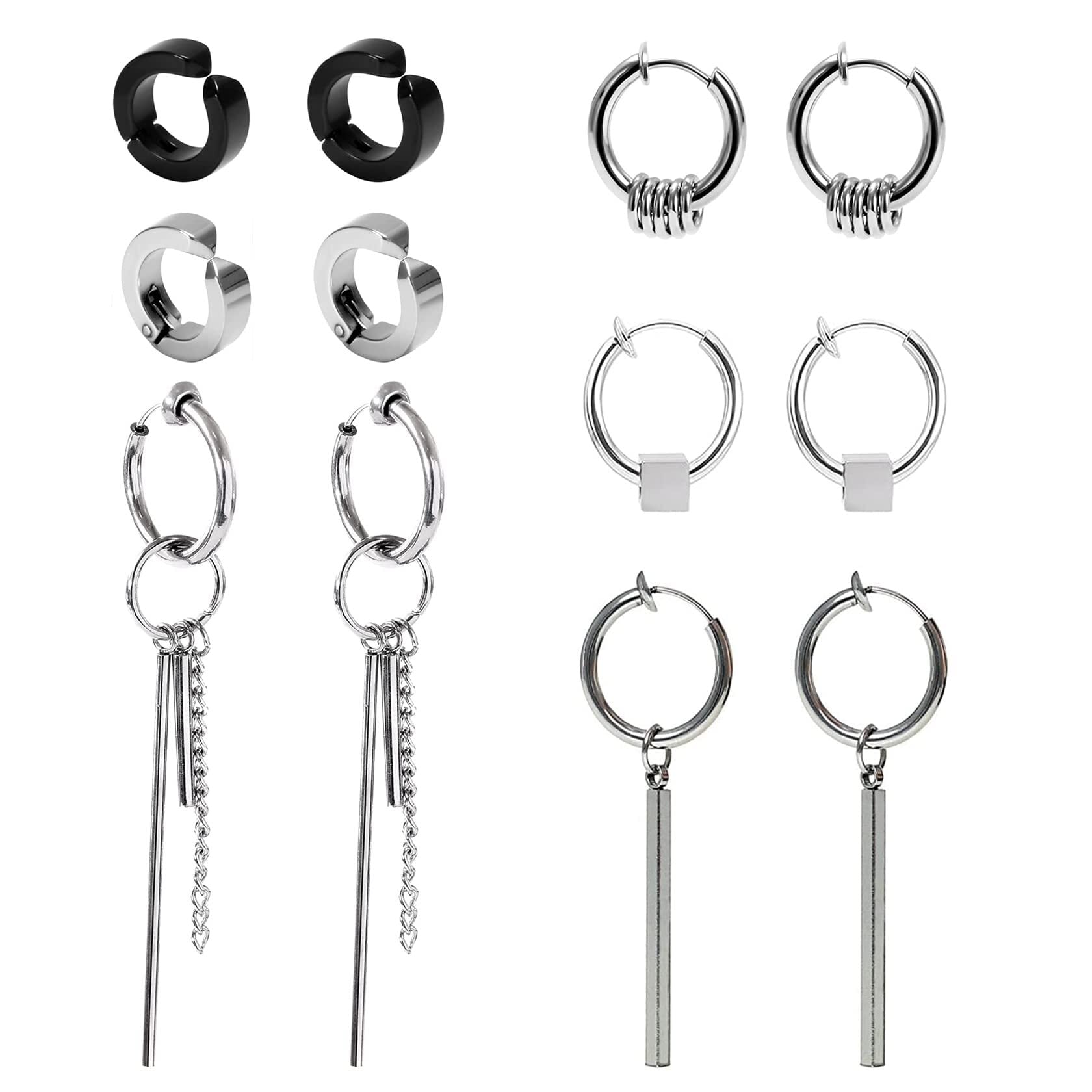 イヤリング メンズ イヤーカフ メンズ フェイクピアス メンズ レディース ノンホール ピアス 人気 シルバー ブラック 男性 両耳用 金属アレルギー対応 6ペア 12個セット 収納ポーチ付き ユニセックス | yankees