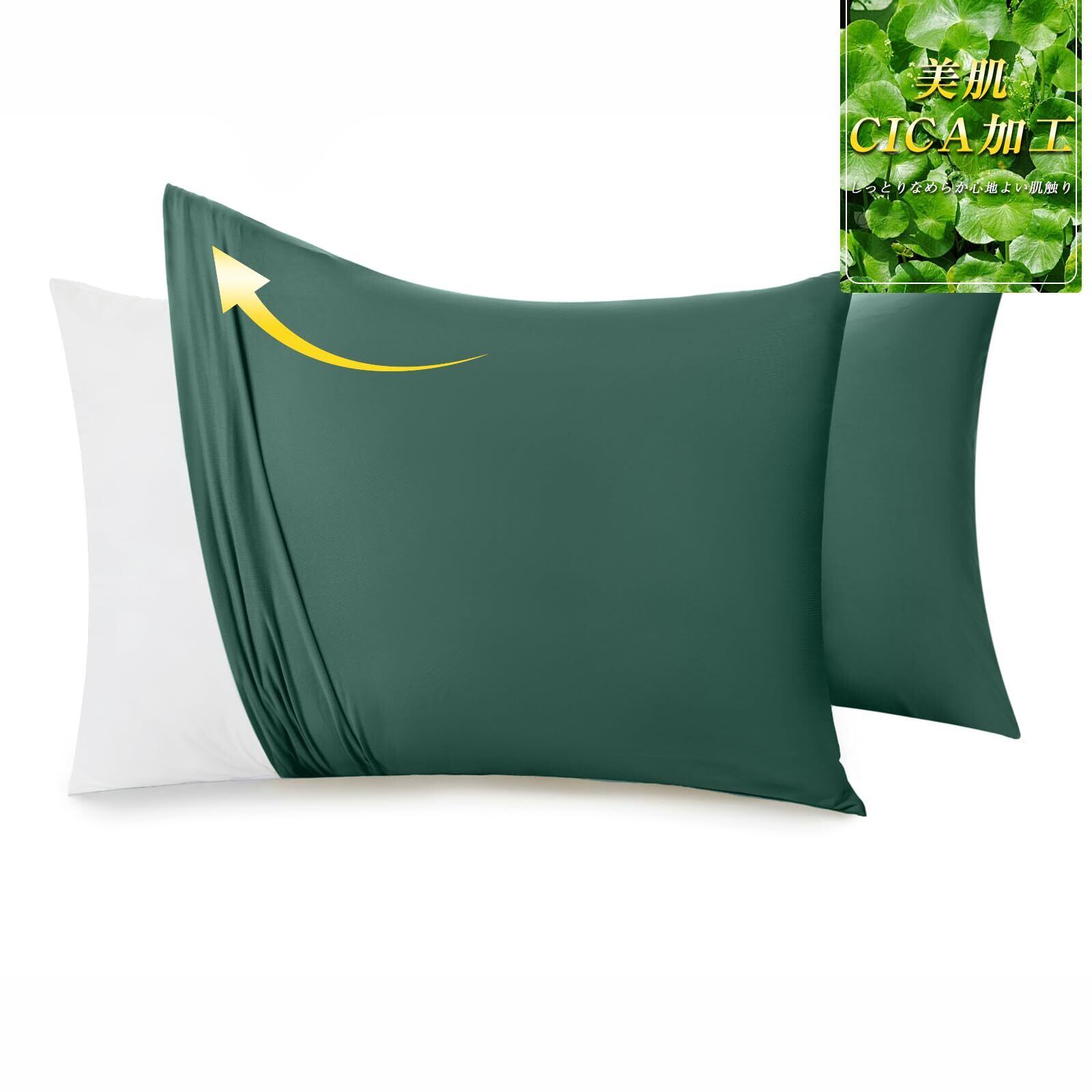 「吸汗速乾・CICA柔軟加工」のびのび 枕カバー 2枚組 35×50 35 55 まくらカバー よく伸びる 伸縮 3Dストレッチ 異形枕にもぴったりフィット 封筒式 オールシーズン ピローケース 抗菌防臭 柔らかい 丸洗い グリーン