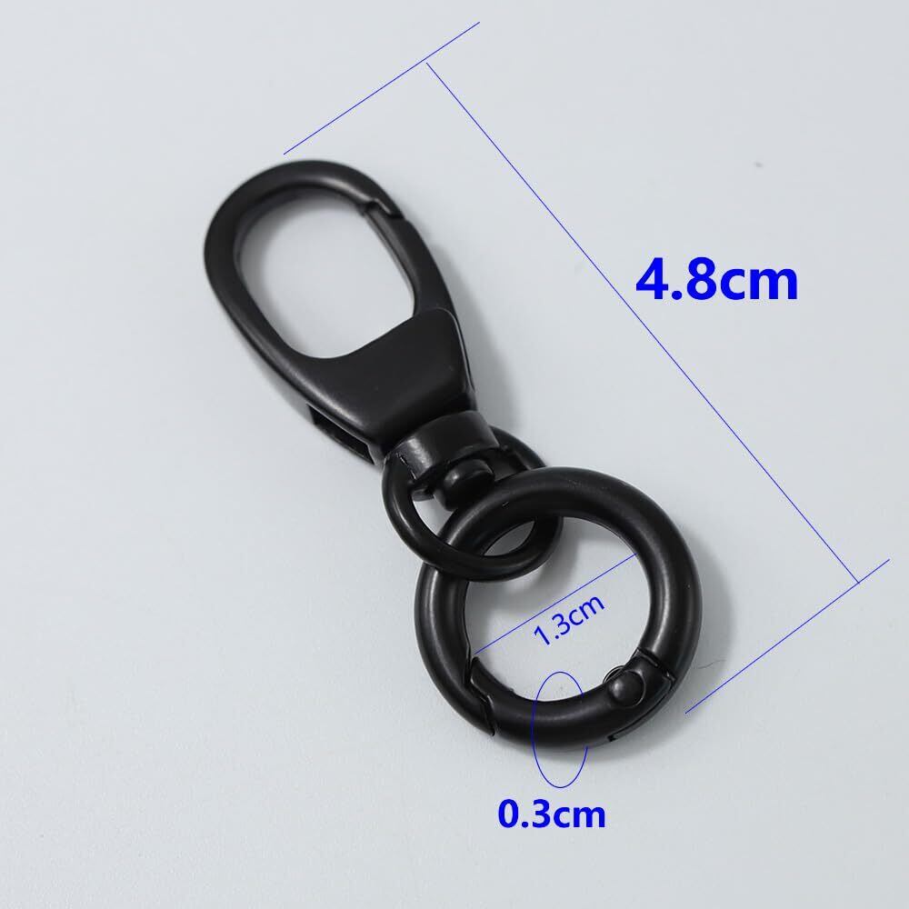 ナスカン 二重リング キーホルダー 回転フック スナップフック 手作り 手芸用品 ハンドメイド金具 レバーナスカン ワンタッチキーホルダー パーツ DIY用 アクセサリーナスカン (4.8cm, ブラック(B))