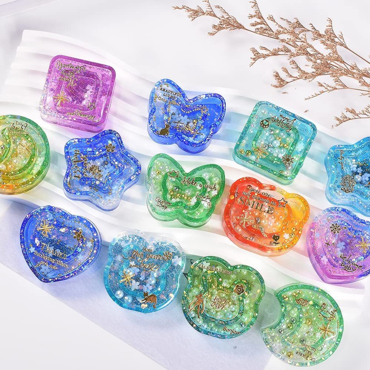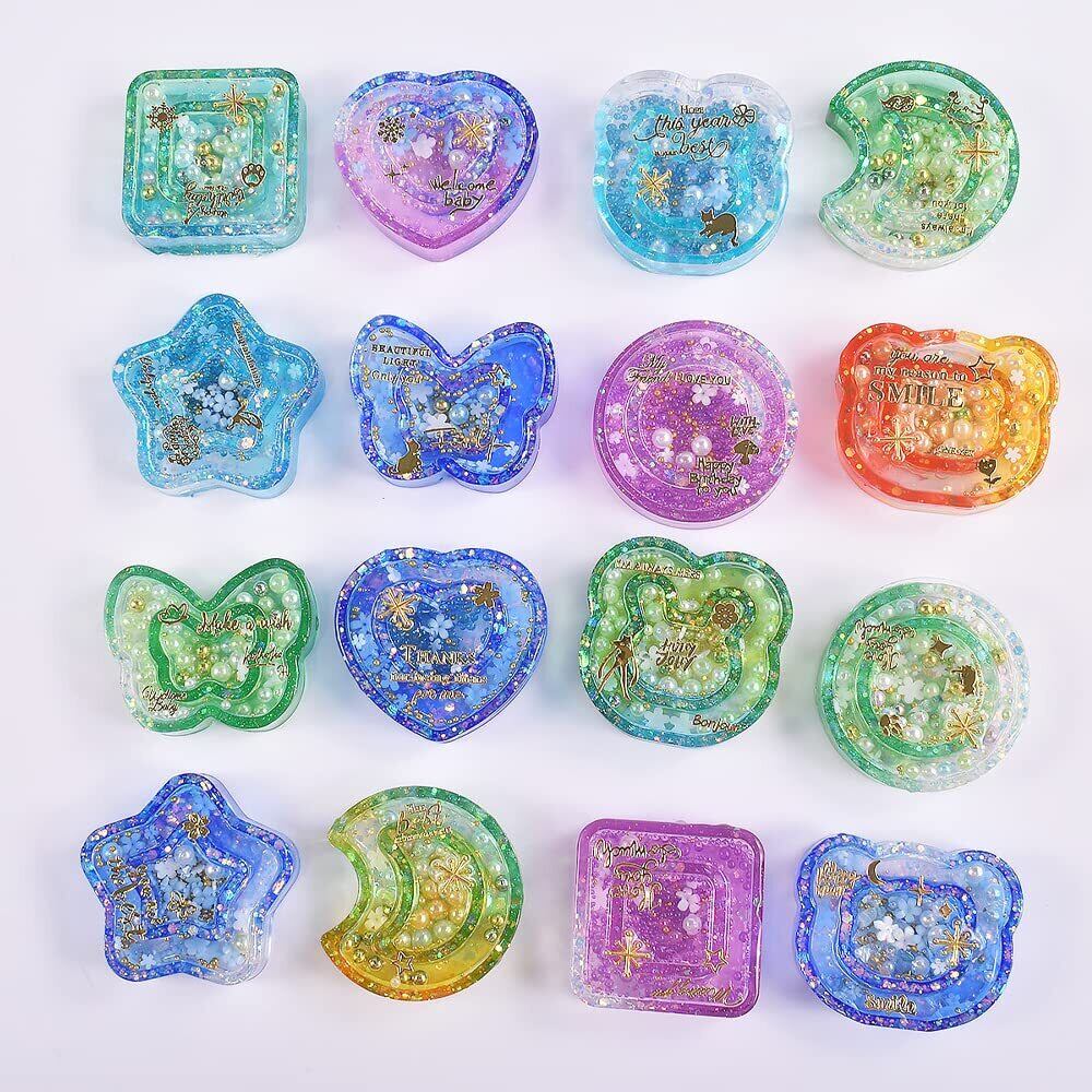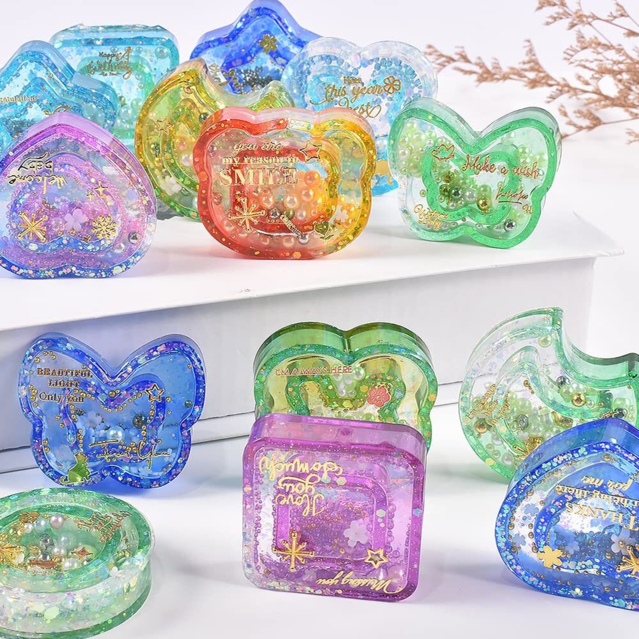 中にパーツやデコ素材を入れてカシャカシャさせたり、カラーオイルや水などをいれても中身がゆっくり動くからとても可愛い!