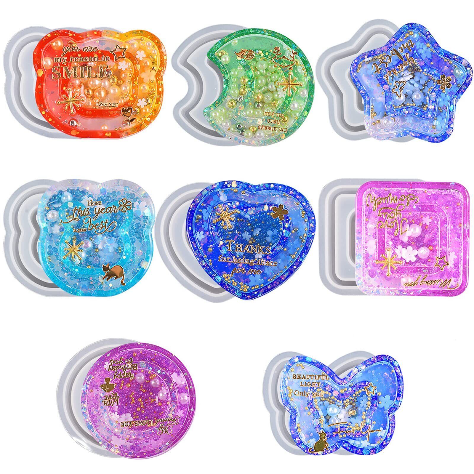 シリコンモールド 8個 流れ砂型 レジン型 シェイカーモールド DIY 手作り ペンダント キーホルダー アクセサリー 装飾 ツール