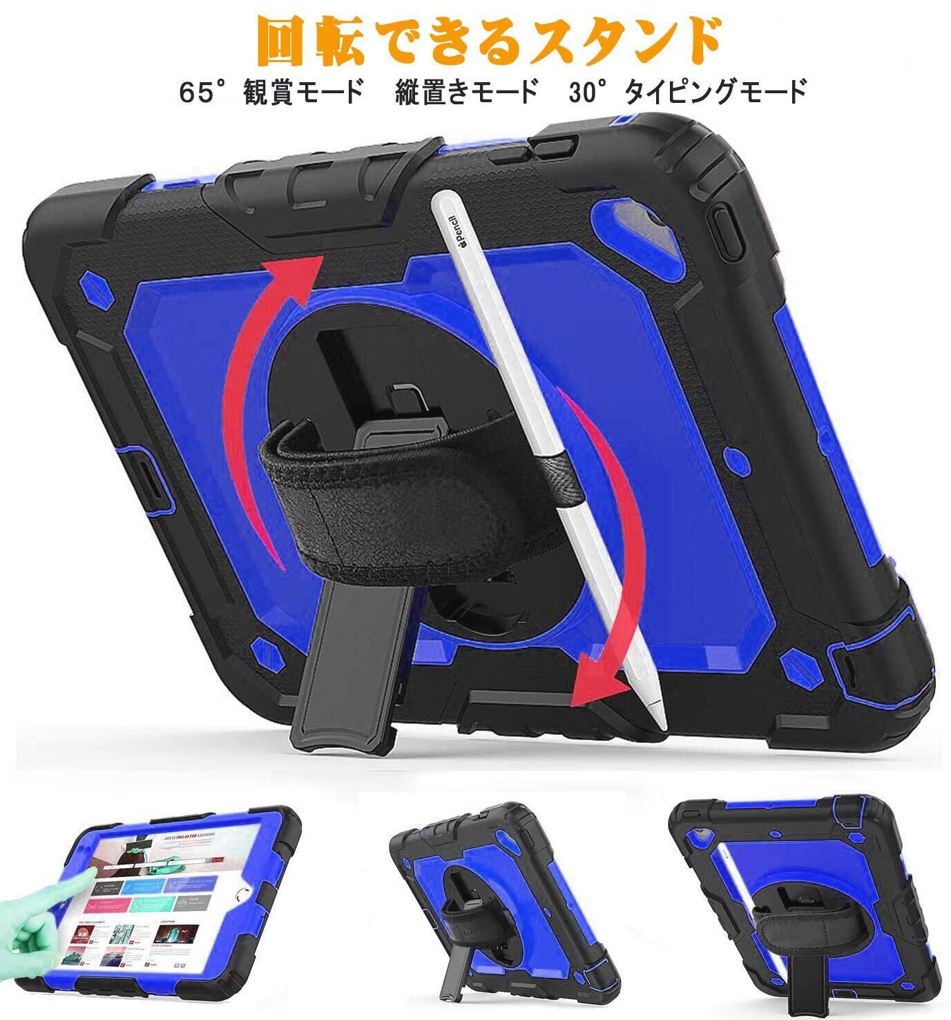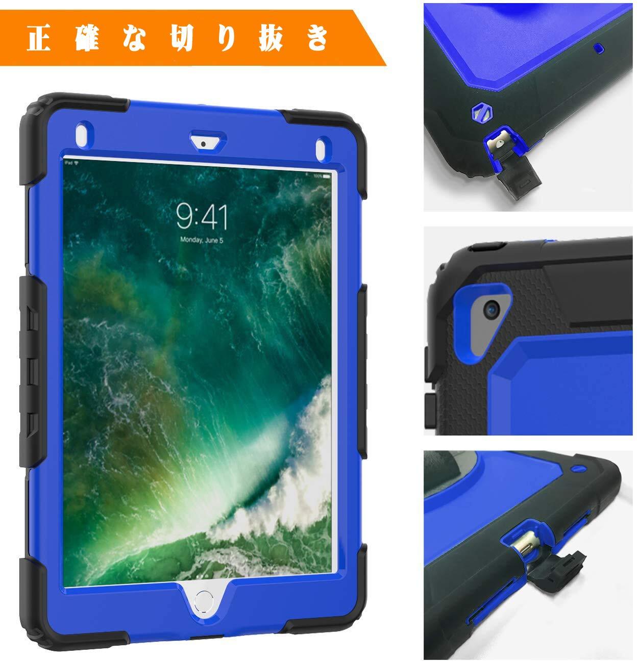 SIBEITU iPad 第6世代/5世代/pro 9.7/Air2 ケース 耐衝撃 頑丈三層鎧 落とす保護 ケース 保護フィルム付き 「360°回転スタンド」 「360°回転握り方」 「調節可能」 「ペン収納」柔らかい 丈夫 ハンドストラップ 防塵 実用 多機能 子供 iPad 6世代/5世代/Air2 9.7’’ 2018/2017 ケース (ブルー+ブラック)