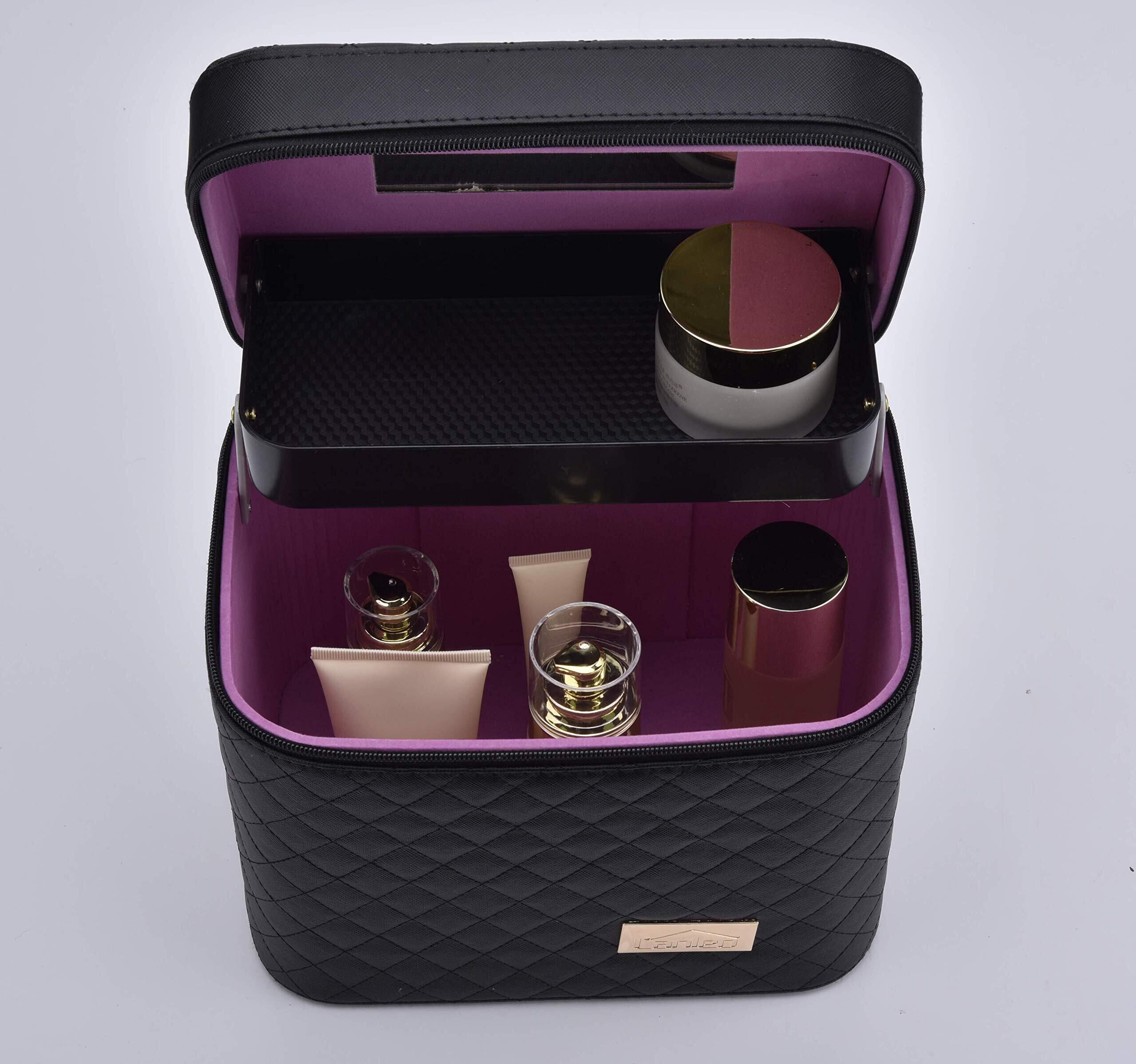 ANNA-SHOP 化粧品収納 ケース メイク コスメボックス 大容量 小物入れ 大容量 取っ手付 (ブラック)