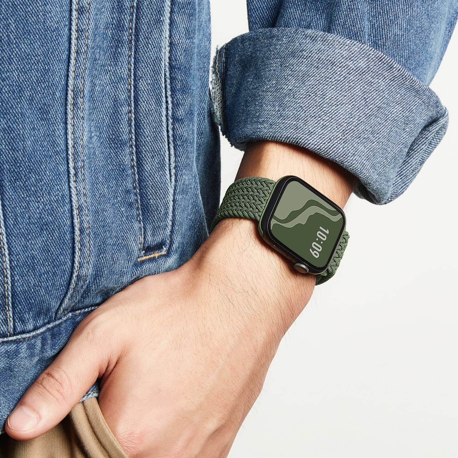 【ユニークな編み込みデザイン】アップルウォッチ 編み込みバンド。伸縮性のある高品質なナイロン糸素材で、高精度な編み込む技術でバンドを織って、特殊な加工で糸が抜けにくいし、何度の着脱も変形にくいです。