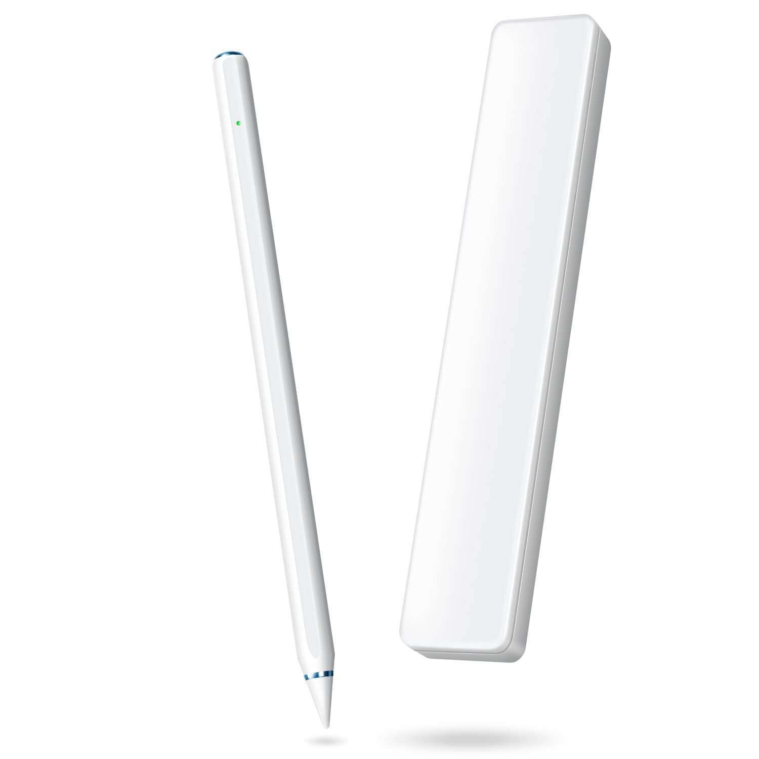 タッチペン 【2024新モデル ワイヤレス充電型】 ipadタブレット用 スタイラスペン たっちぺん 極細 ipadペン USB-c充電式 充電ケース付き 500mahケース容量 傾き感知/誤作動防止/磁気吸着機能対応 5分自動オフ 接続不要 20分間充電 10時間使用可能 (ホワイト)
