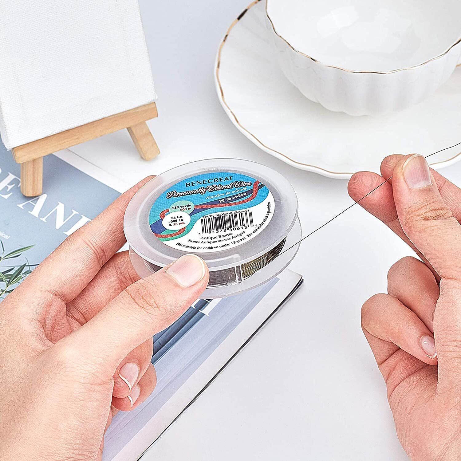 BENECREAT 全長200m線径0.15mmアクセサリーワイヤー アートワイヤー 光沢感 変色防止 ジュエリー作り ビーズクラフト 細い銅線 手芸素材(青銅色)