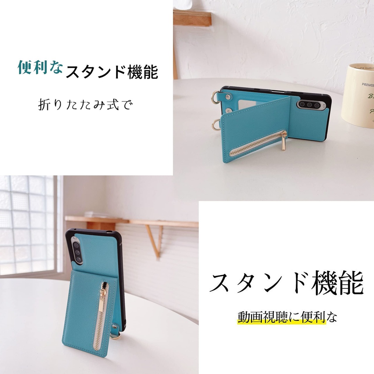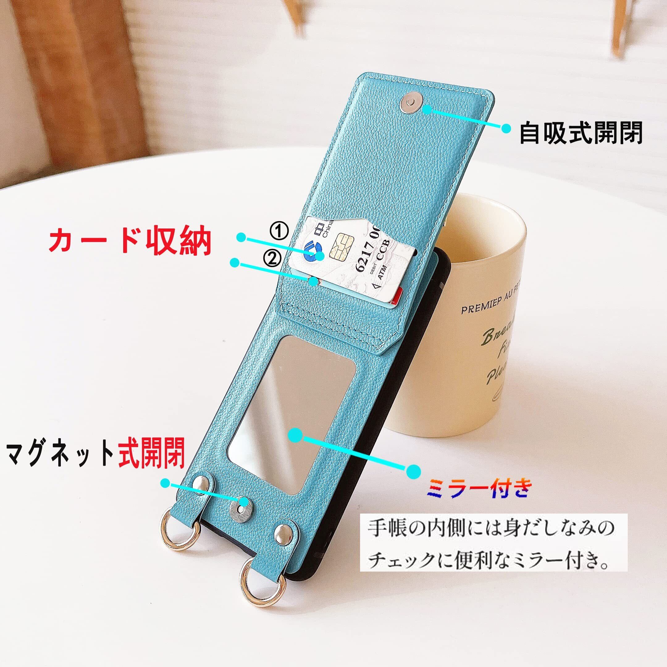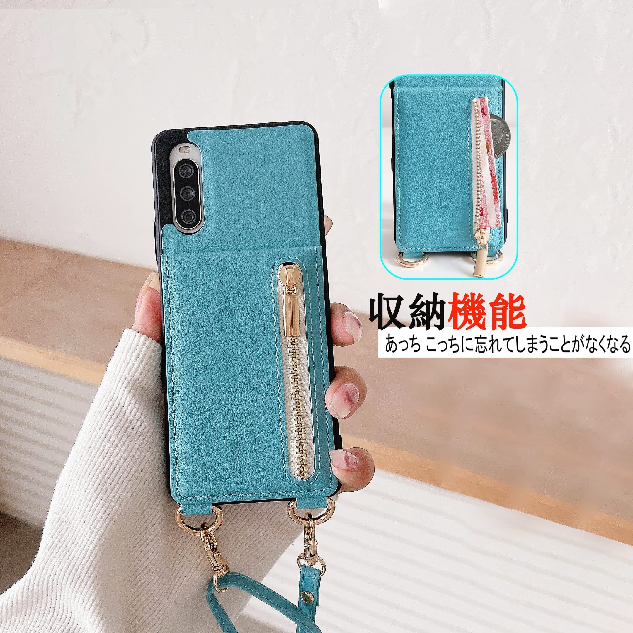 Xperia 10 IV ケース 高質レザー Xperia 10 IV カバー 肩掛け 首かけ 斜めがけ エクスペリア 10 IV ケース ミラーケース SO-52C ケース ショルダー SOG07 ケース 便利 カードポケット スタンド機能 落ち着いた色 調節可能 軽量 多機能 縦置き ICカード収納 財布型 耐衝撃 携帯 鏡付き ケース ターコイズ