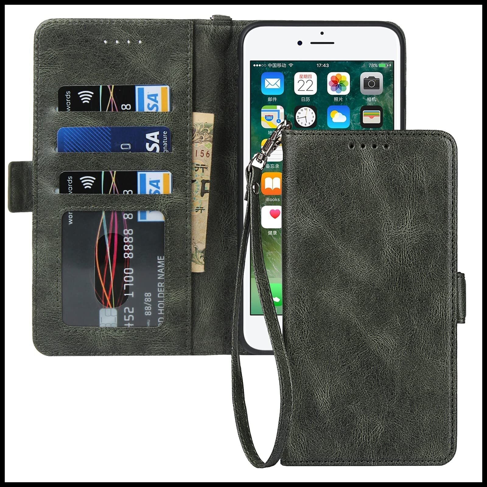 iPhone 7 Plus ケース アイフォン 8 Plus ケース 手帳型 スマホケース [RFIDブロッキング] レザー 携帯カバー マグネット式 カード収納 軽量 汗や指紋防止 耐衝撃 スタンド機能 着脱しやすい 5.5インチ対応 (グリーン)