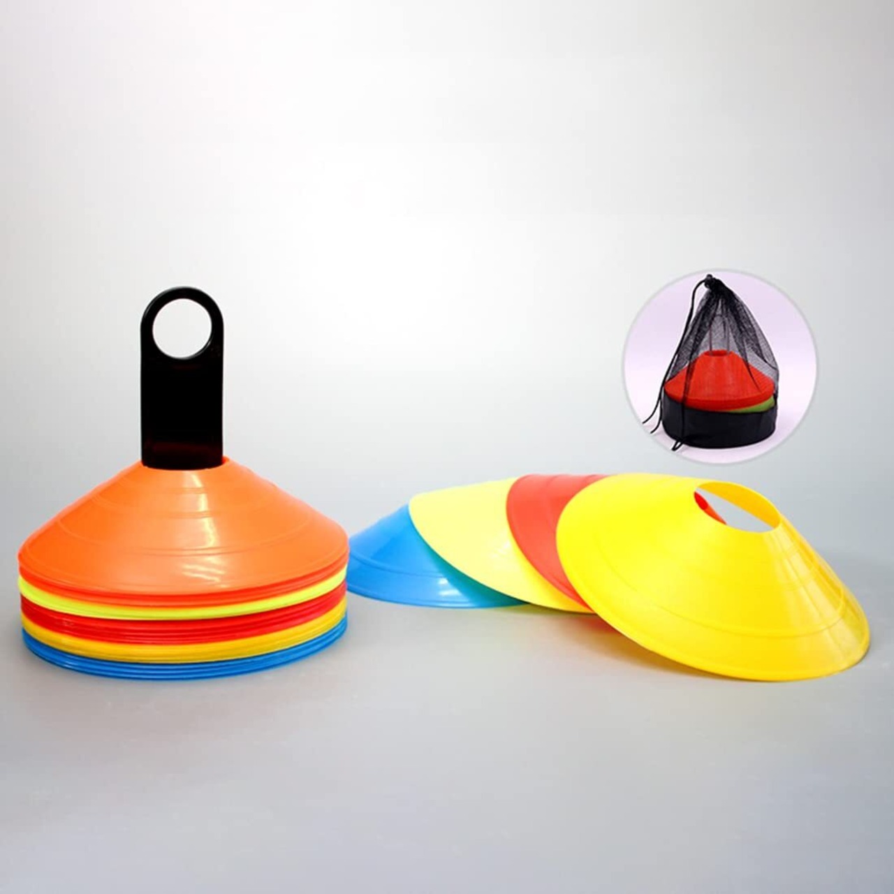 マーカーコーン トレーニングコーン カラーコーン ディスクコーン 5色10枚/25枚/30枚/60枚 フットサル用品 ドリブルマーカー 野球 テニス サッカー 練習コーン 収納袋・専用スタンド付き
