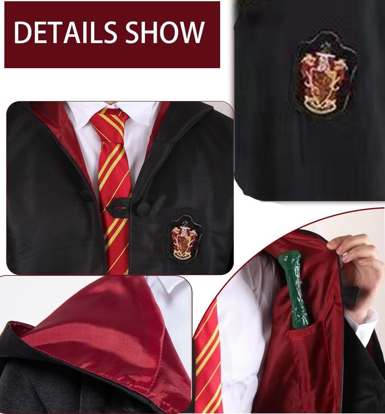 [RinMart] ハリーポッター 風 衣装セット グリフィンドール風 (ローブ + 眼鏡 + ネクタイ + 魔法の杖) 4点セット 男女共用 コスチューム