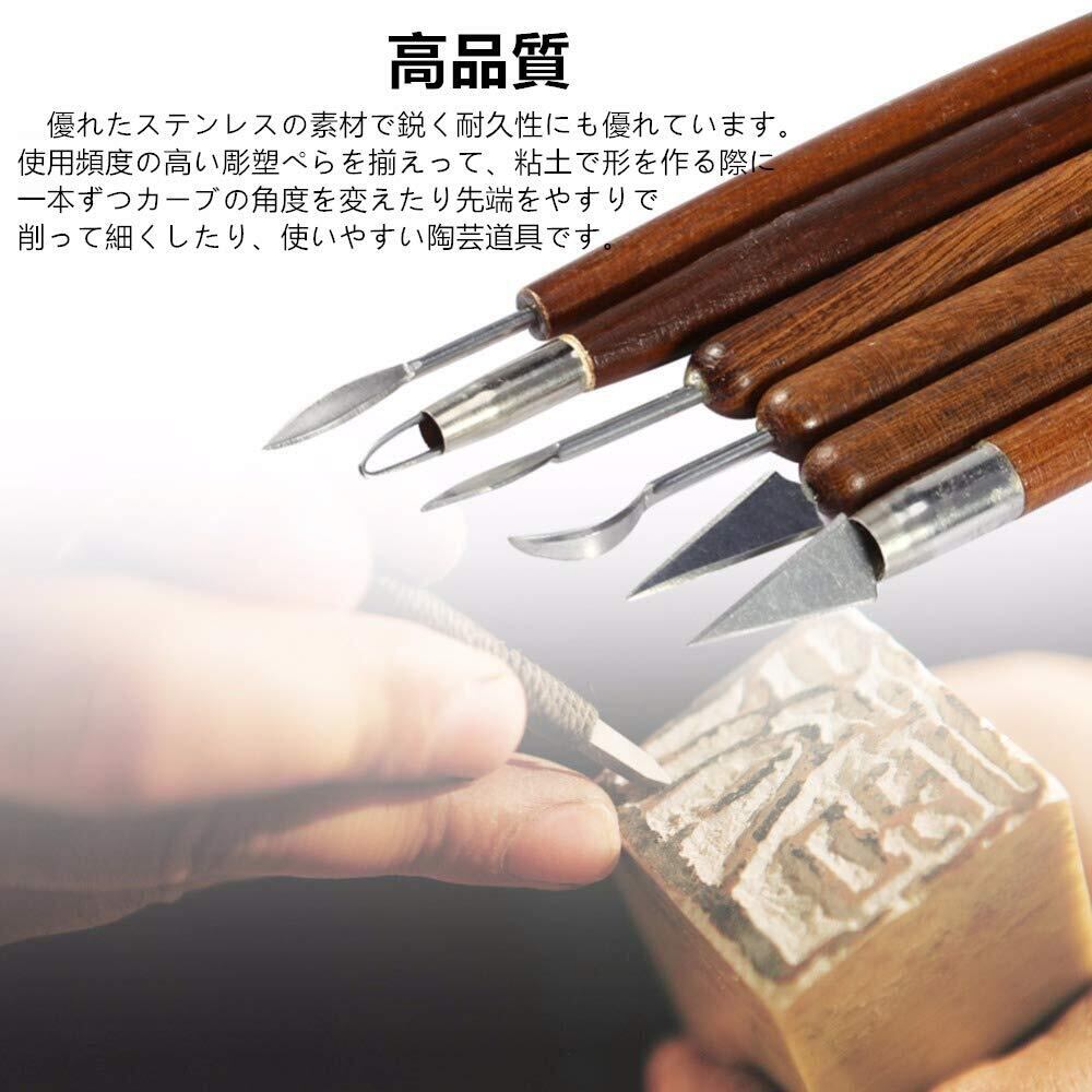 【ヘラ先】サビにくい良質なステンレスの素材で鋭く耐久性にも優れています。使う頻度の高い彫塑ぺらを揃えって、粘土で形を作る際に一本ずつカーブの角度を変えたり先端をやすりで削って細くしたり、使いやすい陶芸道具です。