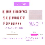 【セット内容】ネイルチップ24枚、両面テープ24枚、ネイルファイル(爪やすり)1個、ウッドスティック1本。