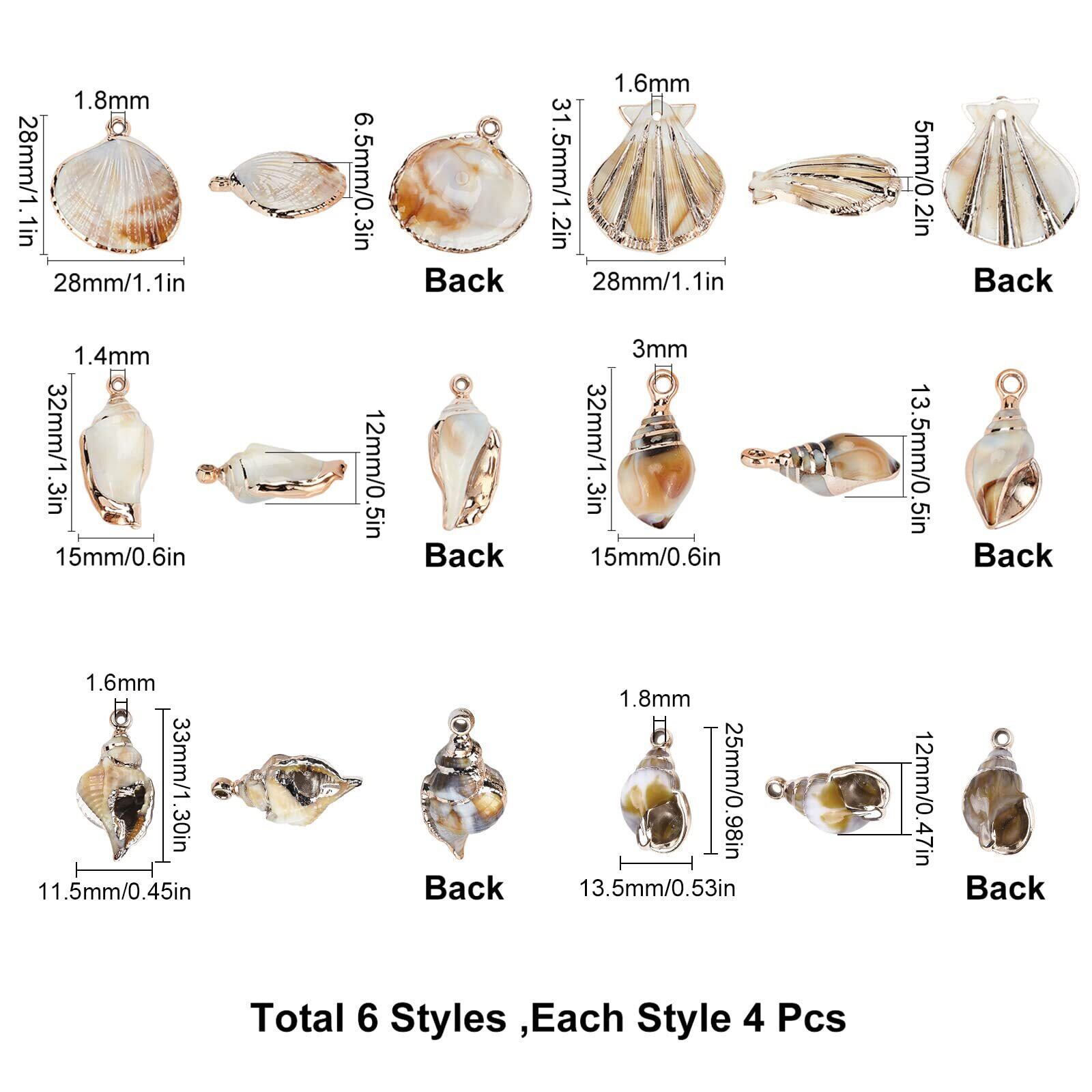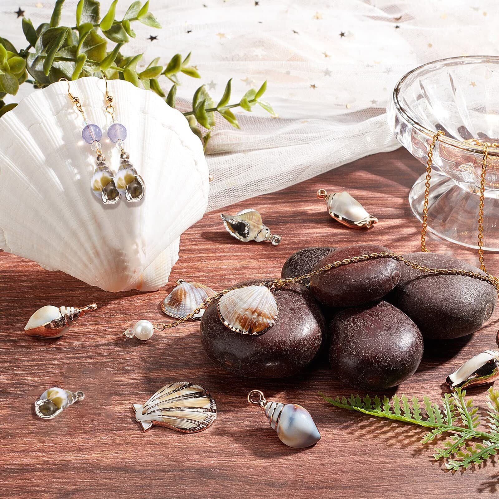SUNNYCLUE 24個6種 夏 貝殻 チャーム シェル チャーム ビーチ パーツ ペンダント 貝殻 ネックレス オーシャン 鍍金 貝 イヤリング オーシャン つぶ貝 ブレスレット 海洋 てんねん素材 ハワイ ビーチ 貝細工 海 シリーズ 金古美 ハワイアン 接続パーツ 海の生き物 ビーチ小物 夏の日 キーホルダー 海洋生物 チョーカー 海のテーマ アクセサリーパーツ ジュエリー作り レディース デコキット クラフト手芸 手作りキット ジュエリー用 DIY ハンドメイド DIY飾り物