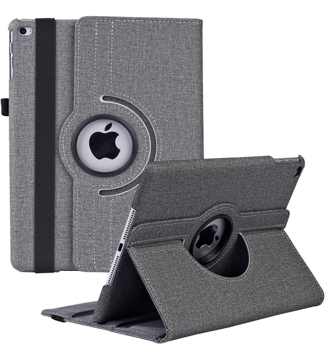 iPad 9.7 2018/2017ケース 新型(Newモデル)/iPad Air/iPad Air2カバー iPad 9.7インチ(第6、5世代)軽量 手帳型 360度回転スタンド オートスリープ機能 3段階調節可能 固定バンド 脱落防止耐衝撃 耐久性 おしゃれデニム生地 (グレー)