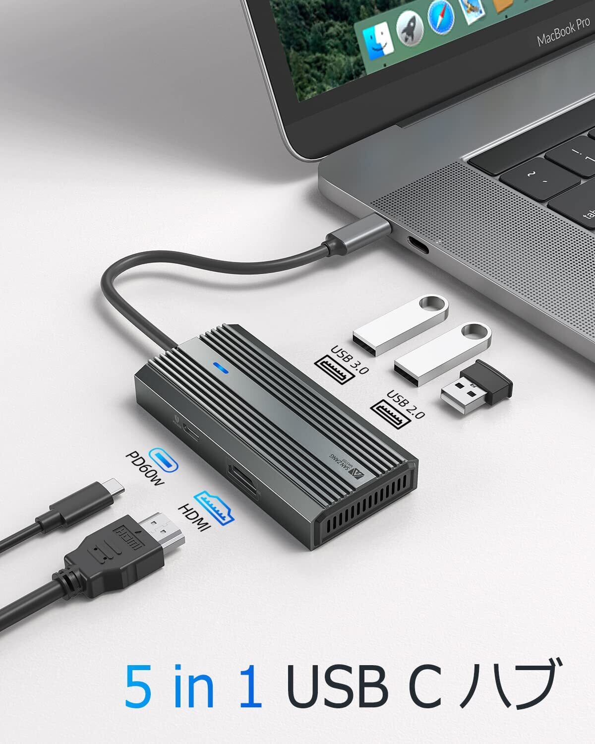 SAN ZANG MASTER USB C ハブ HDMI 4K 解像度 USB-C ハブ 5-in-1 PD充電 60W出力 USB3.0ポート搭載 5Gbps高速転送 USB2.0ポート搭載 MacBook/MacBook Pro/ChromeBook/Air/iPad Pro/Type-C Laptop対応 テレワーク リモート 在宅勤務 | yankees