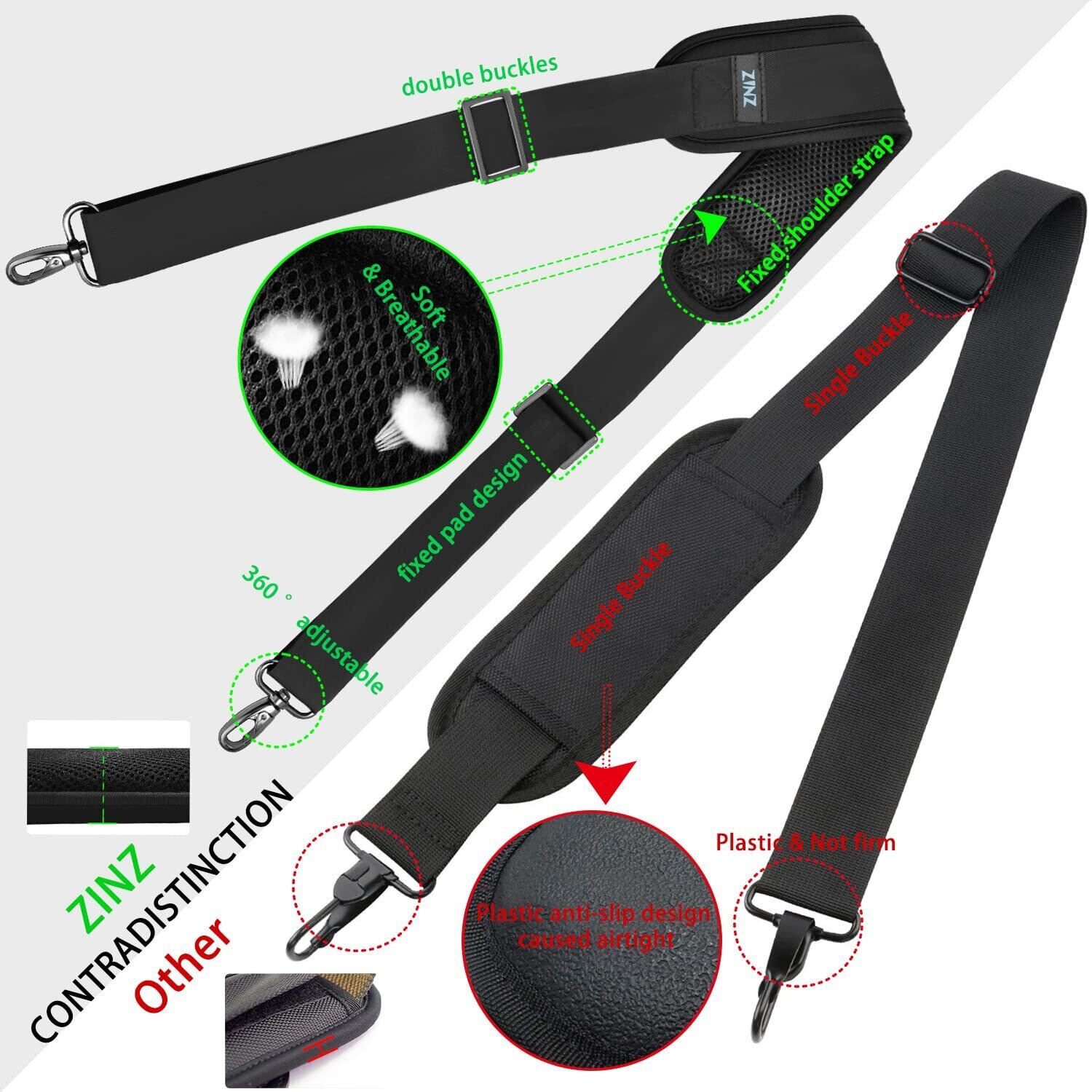 デュアルバランスバックル:ダブルバックルのデザインは、バッグの重量のバランスをとるために長さを個別に調整できるため、肩がより快適になります。滑り止めのデザインにより、デュアルクラスプは安定しています。バッグの重量が変わっても、ショルダーストラップ自体の長さは変わりません。
