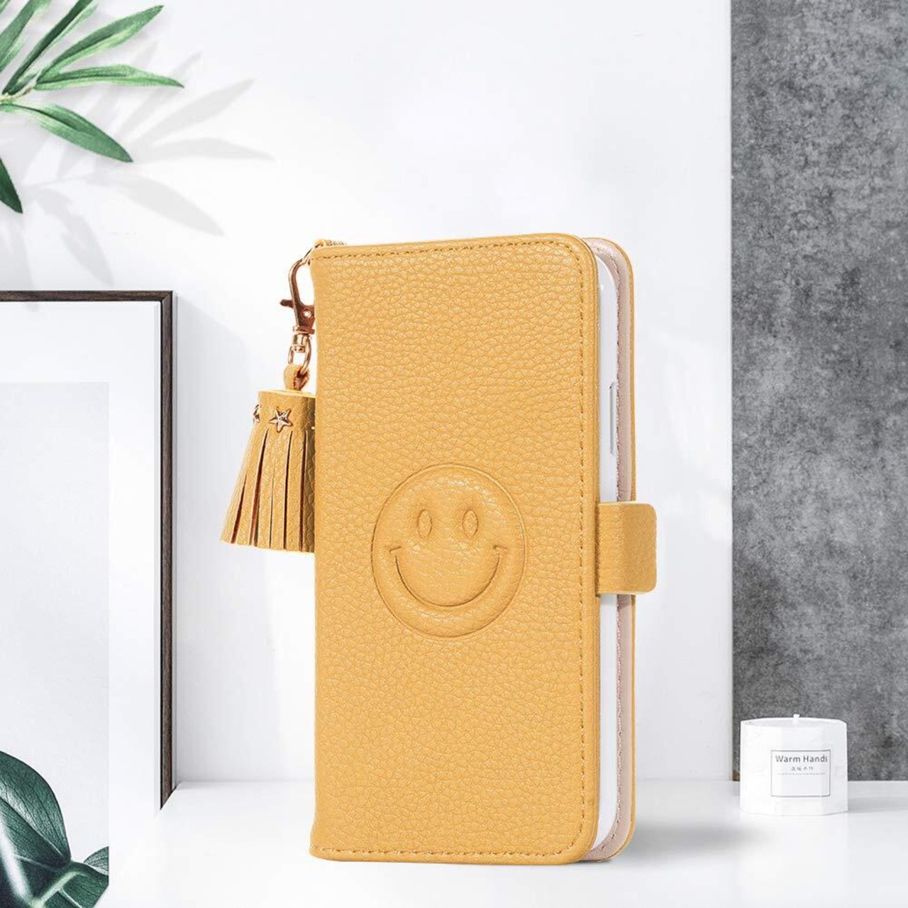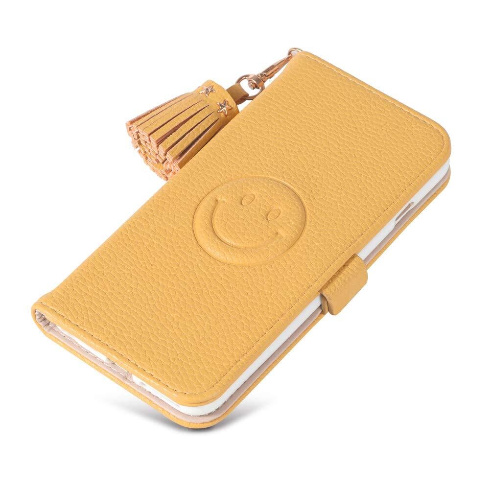 iPhone SE3 ケース手帳型 かわいい シンプル ケース 手帳型 おしゃれ iPhone 8 携帯カバー 高級レザー iPhone 6s 手帳ケース タッセル アイフォンse3 ケース手帳型 アイフォン8 ケース手帳がた smile 女性 SE2 携帯カバー 全面保護 防汚シェル 笑顔 iPhone 7 財布型 横置きスタンド機能付き 電話ケース (イェロー)