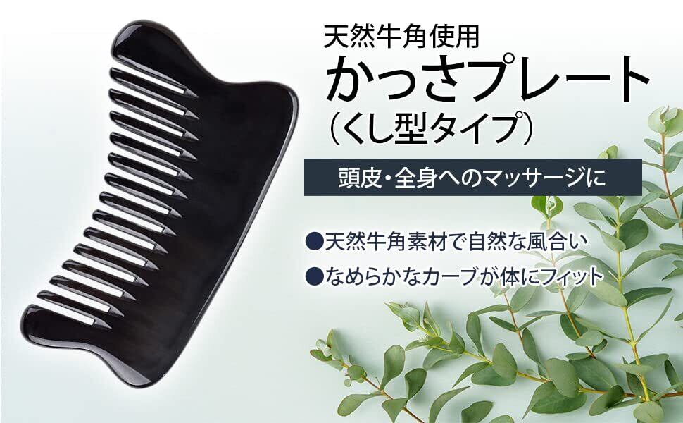 かっさプレート くし型 黒 天然牛角 かっさマッサージ 美容 頭皮マッサージ 櫛 健康グッズ