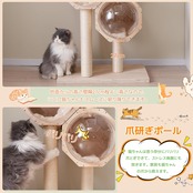 【遊べるポイント満載】フワフワな広い見晴らし台、にゃんこ心をくすぐるポンポン、すやすや眠れる隠れ家*2、ガリガリできる支柱*7、猫ちゃんが喜ぶ機能いっぱいなキャットタワーです。