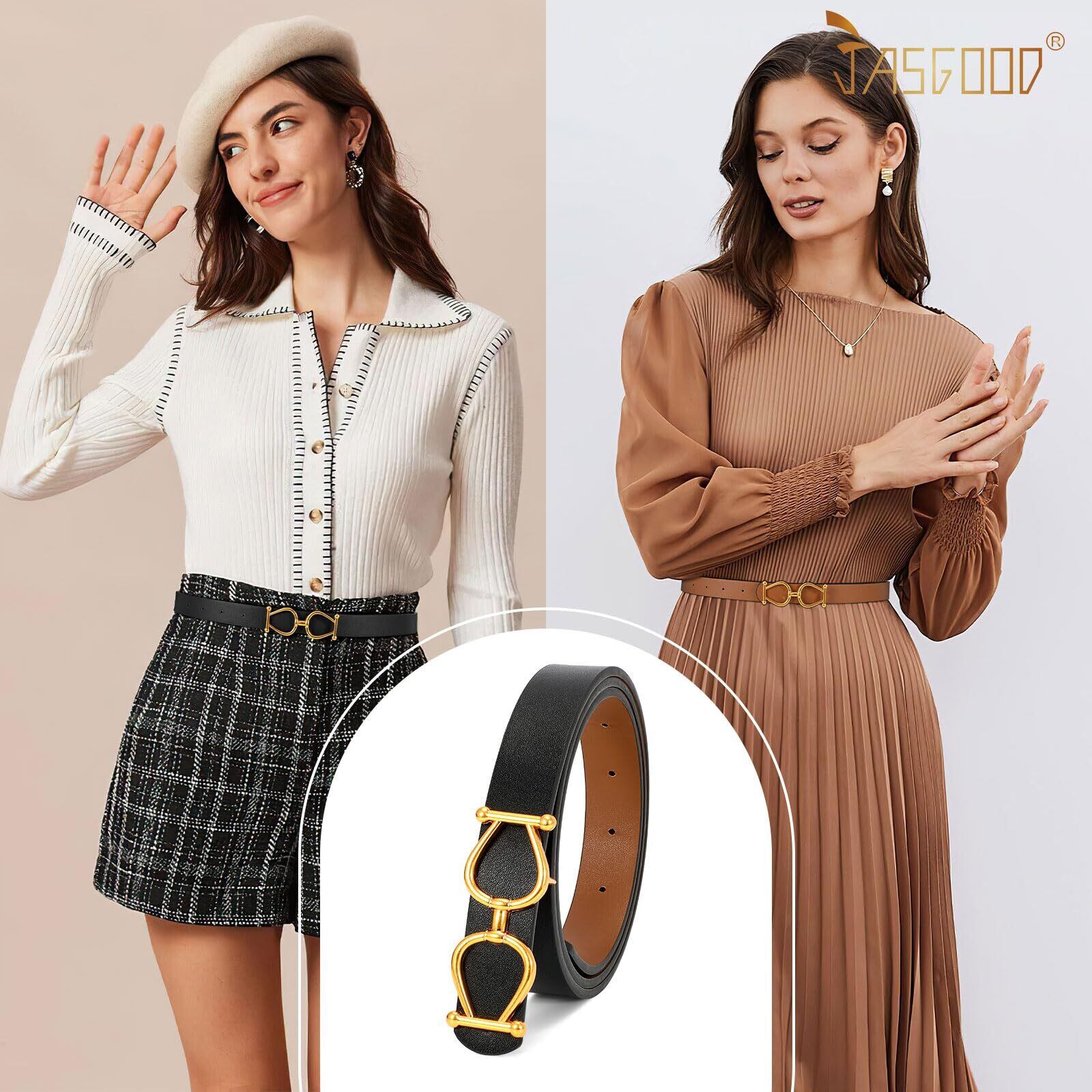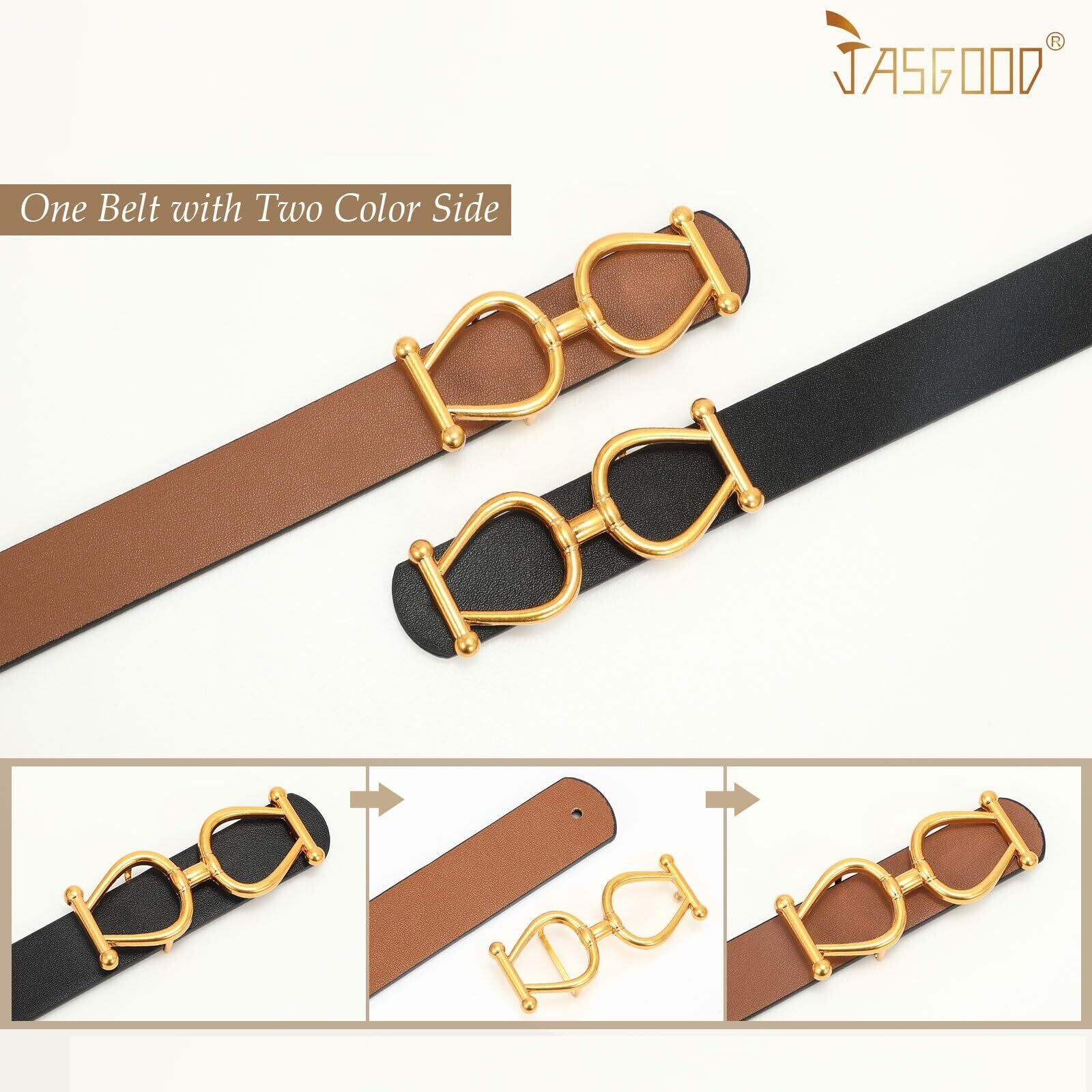 [JASGOOD] ベルト レディース リバーシブル 両面使用可能 革 細ベルト ドレスベルト ビジネス/カジュアル 彼女、母の日にプレゼント