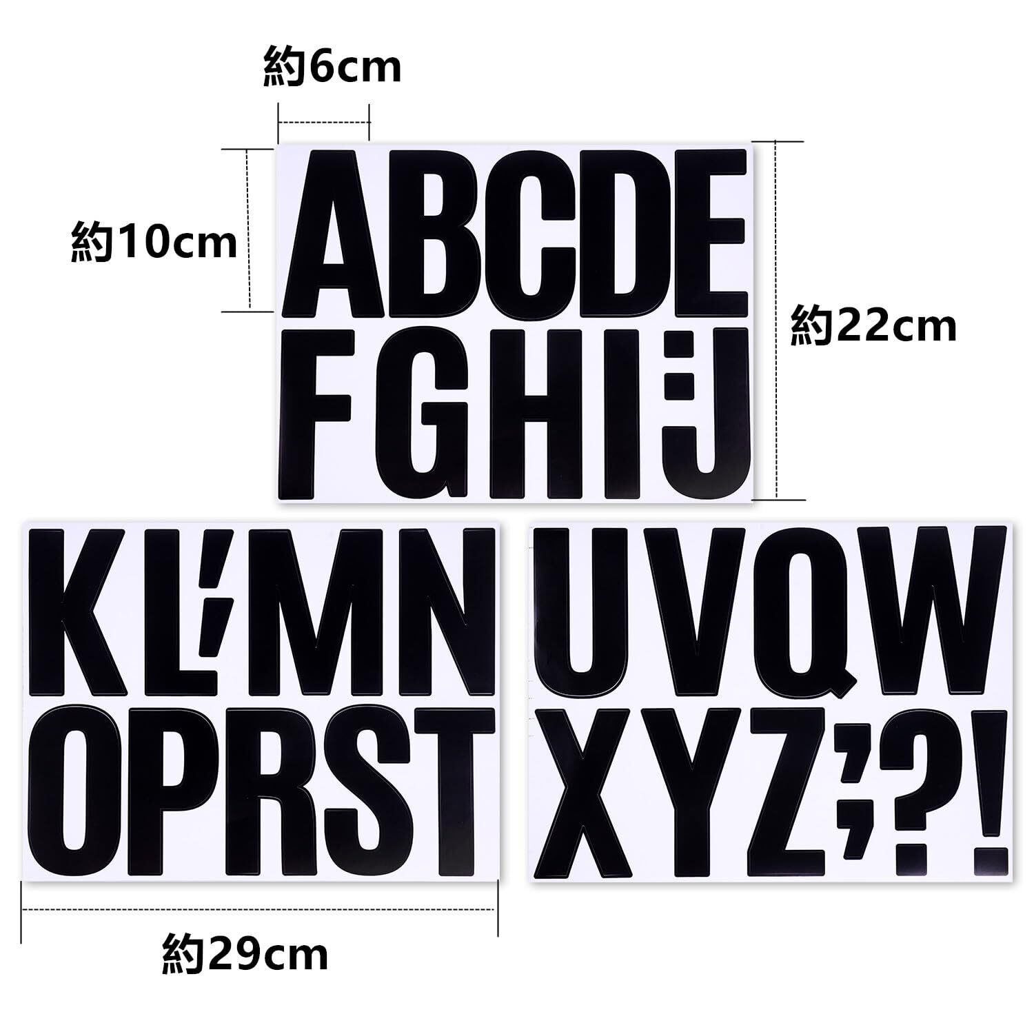 数字 シール 大きい アルファベット ステッカー 番号 ナンバーシール文字シール 防水 白 黒 ブラック ホワイト 3枚セット (4インチ ブラック アルファベット)