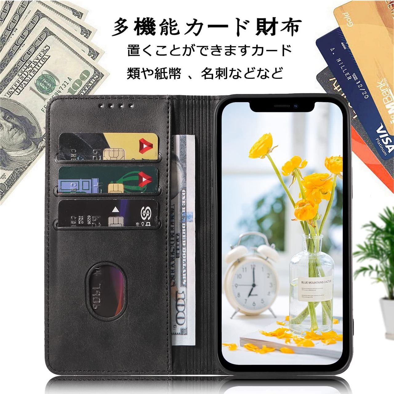 iPhone12 ケース iPhone 12 PRO ケース イフォン12/12 PRO ケース スマホケース 手帳型 携帯カバー レザー 耐衝撃 軽量 着脱しやすい 放熱性 マグネット式 カード収納 スタンド機能360度保護 PinLiSheng (ブラック, iphone12/12pro)