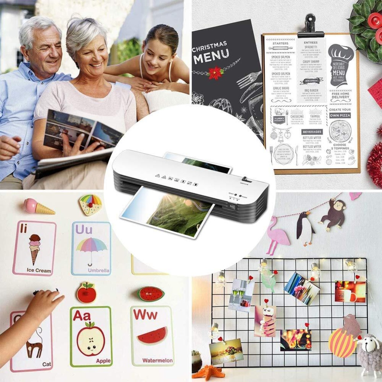 【静音設計&コンパクトデザイン】音は全く気になりません。少なくとも寝ている子ども起こすような音はでません。いつでも楽にラミネートできます。コンパクトで収納しやすく、最大ラミネート厚0.5mmまで対応しているため写真加工用としては十分です。学校や職場、ご自宅、店などの場合で大活躍。家族写真を長く保存したり、及び、貴重な資料、メニュー、名刺、従業員証などの汚れや劣化を防ぎ、長く使うことができます。