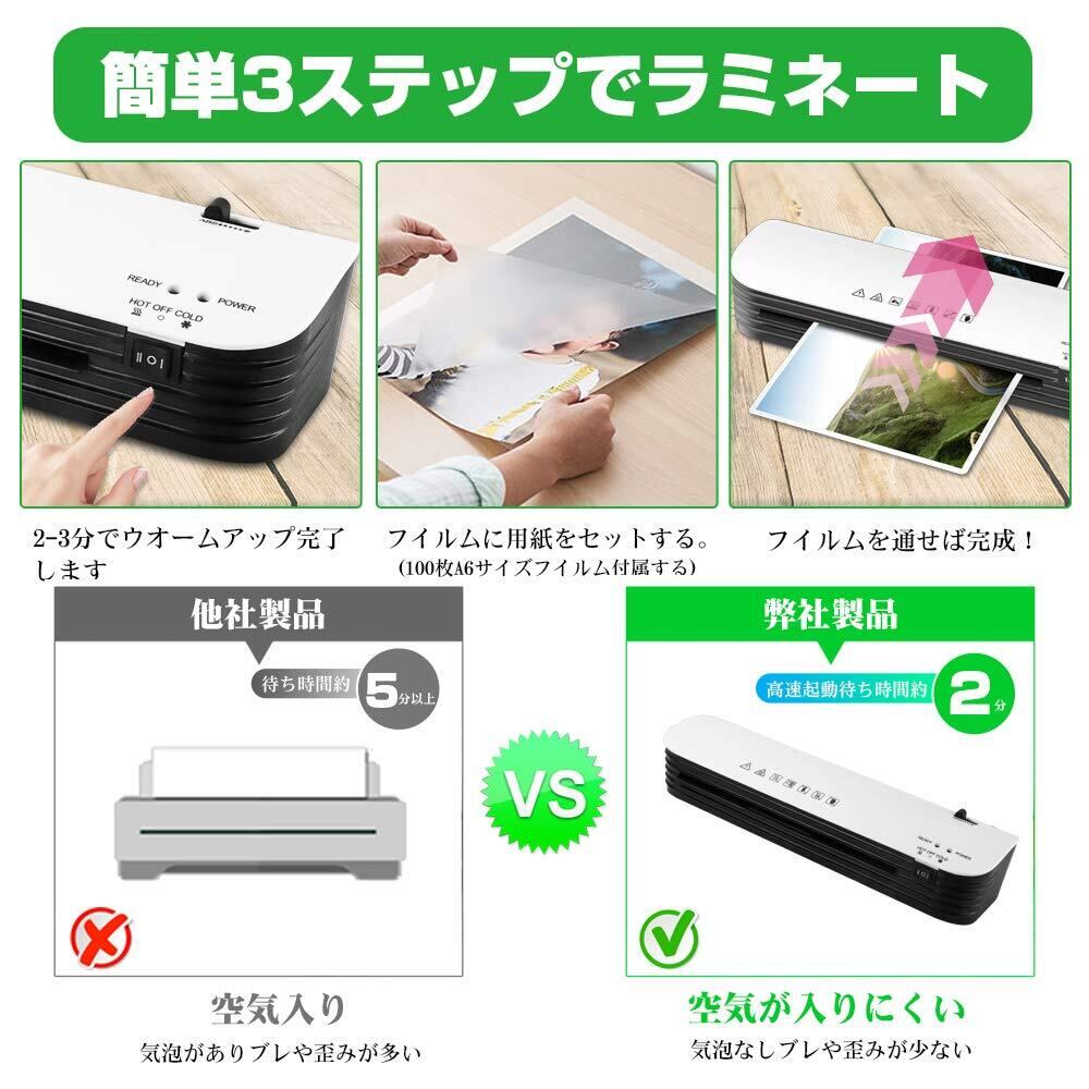 ラミネーター ラミネート 機械 ラミネーター A4 軽量 静か 波打ち防止 気泡なしラミネートフィルム 9枚付き コンパクト 気泡なし ABS機能 2分間ウォームアップ 冷/熱モード付き 連続作業可能 【PSE認証済み】 オフィス用品 業務用 家庭用 【日本語説明書】母の日プレゼント