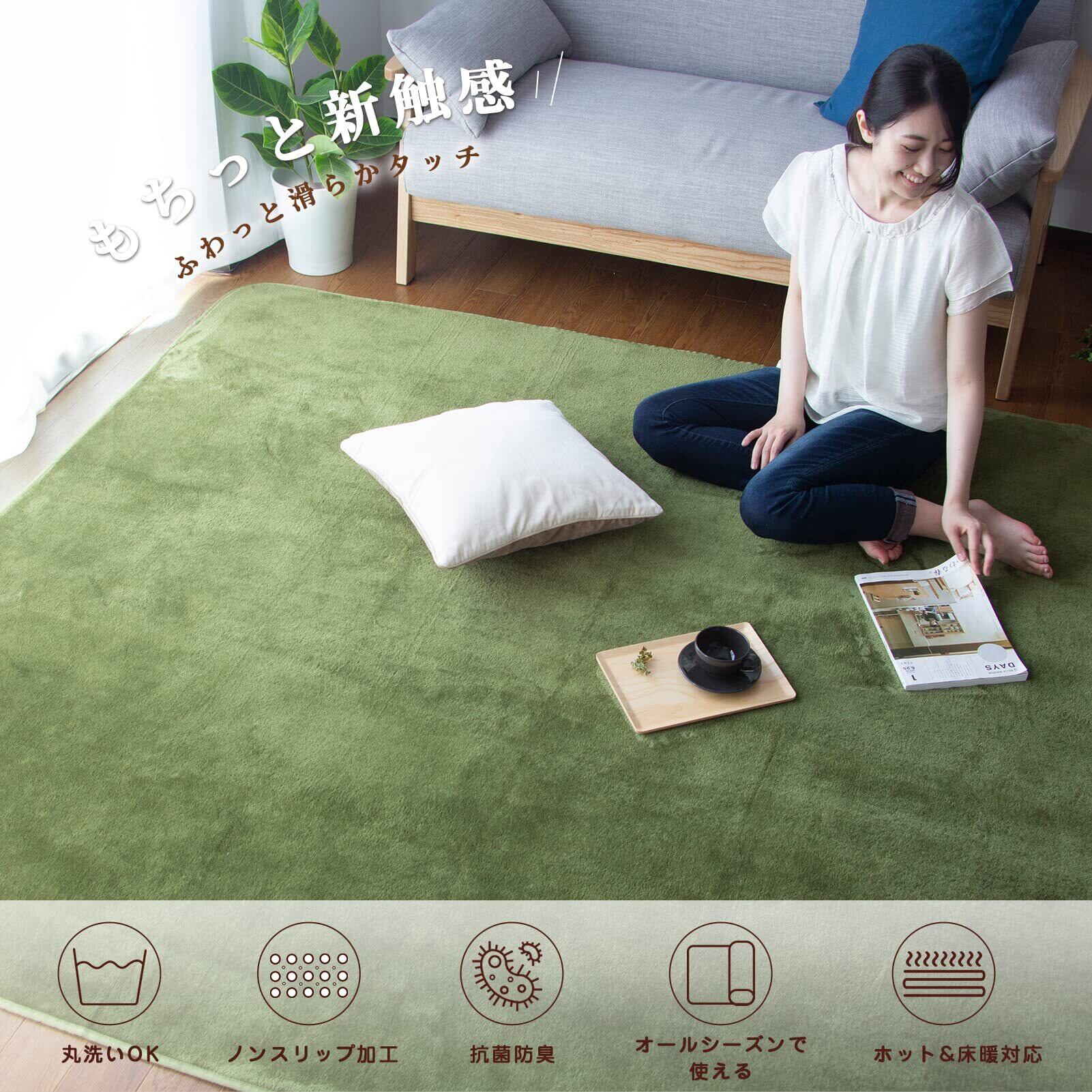 Colorsroom カーペット ラグ ラグマット 1.5畳 長方形 洗える amazon ラグ 絨毯 滑り止め付 抗菌 防臭 防ダニ オールシーズン 床暖房 ホットカーペット対応 ふわふわ肌触り フランネルラグ 135×185cm グリーン