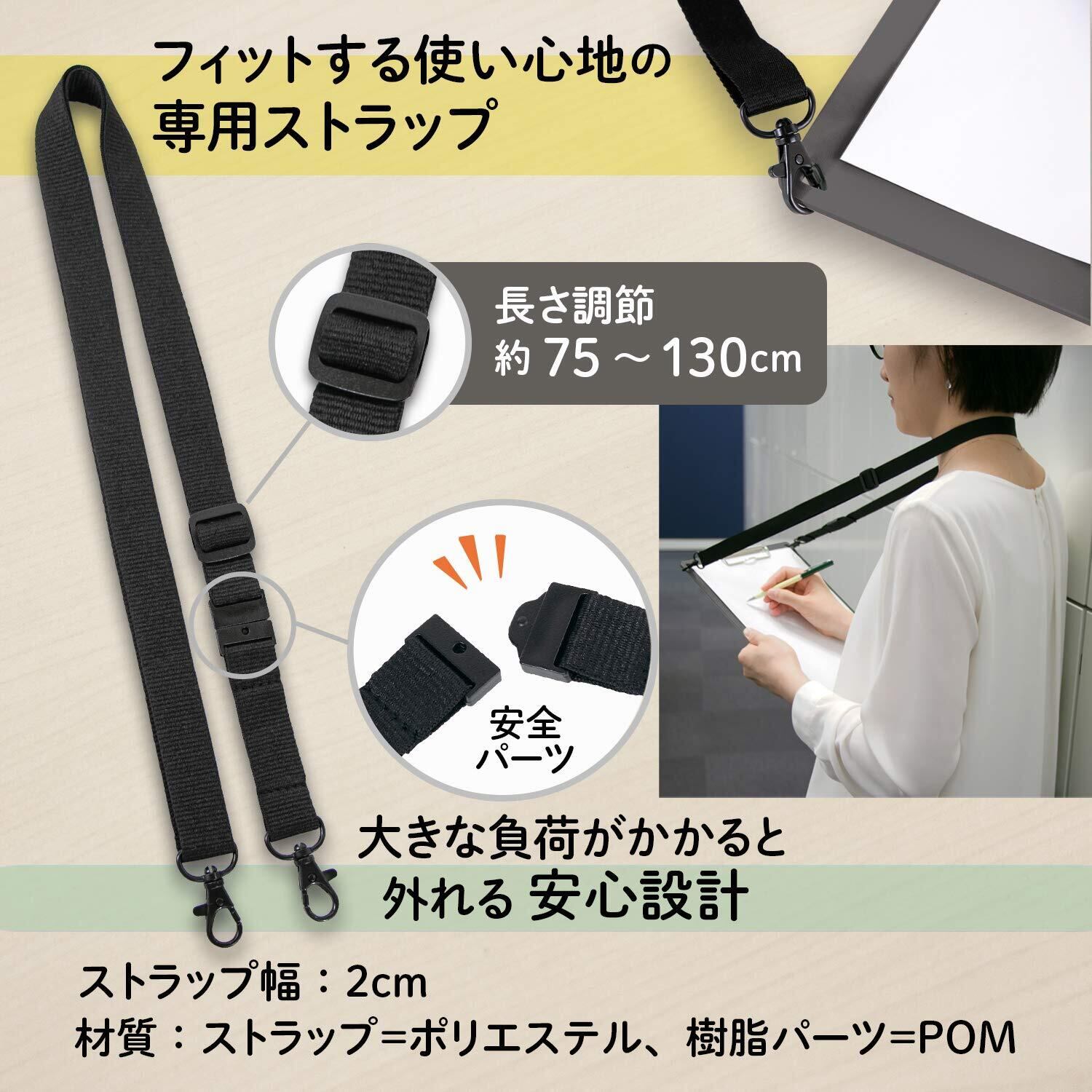 プラス A5サイズにおりたためる A4クリップボード+ ダークグレー 83-161 専用ストラップ 付