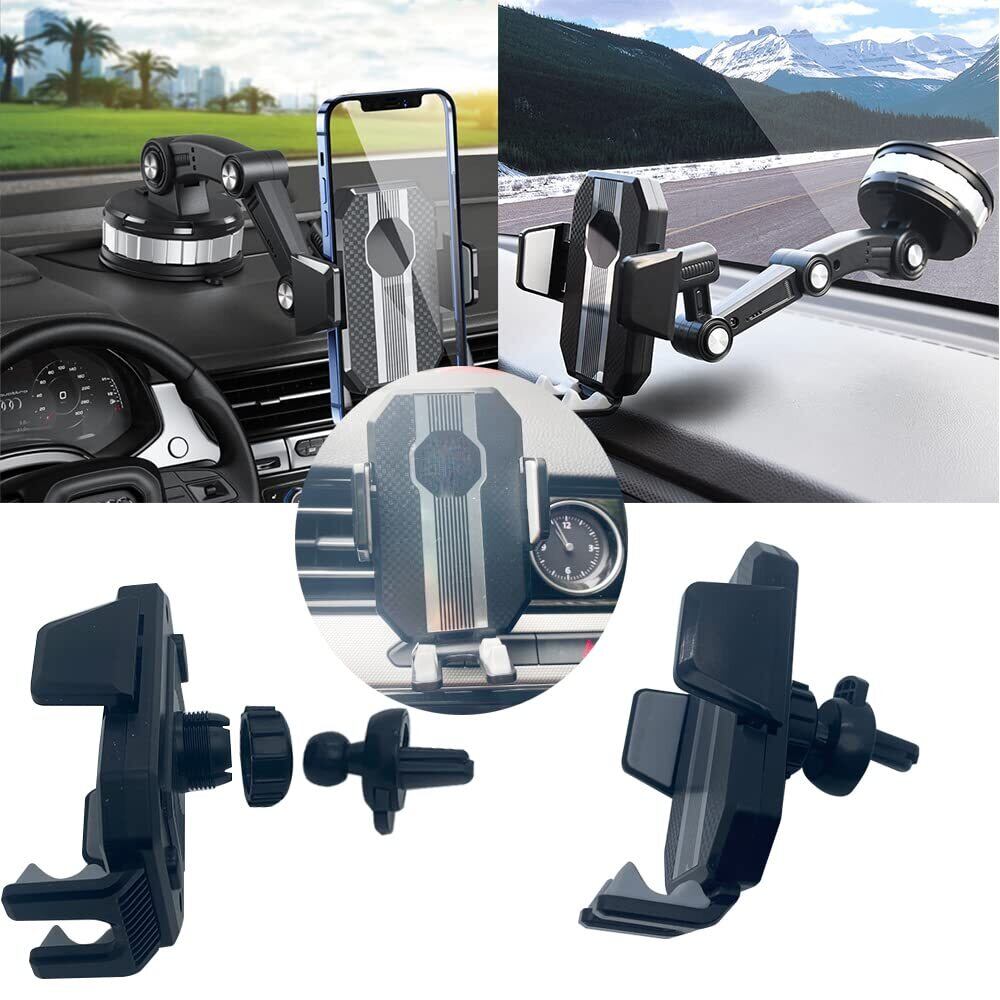 スマートフォン用車載ホルダー、 スマホ ブラケット、粘着ゲル吸盤式兼エアコン吹き出し口式携帯電話ブラケット 360度回転