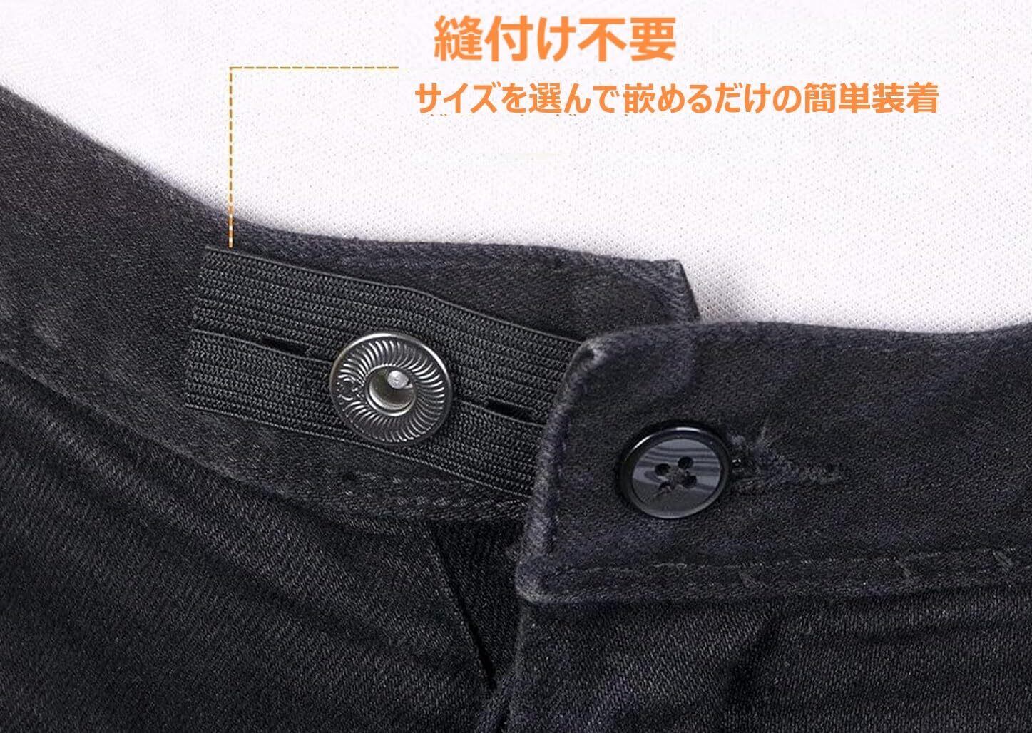 【調整可能範囲】3つのボタン穴があり、サイズに応じて掛けるボタン穴を選べます。きつくなったズボンやジーンズのウエストを1.5cmから5.5cmまで広げることが出来ます。針も糸も必要なし、ミシン・縫製、縫い付け不要で、簡単に素早く取り付けて利用できます。取り外しもボタンを外すだけで、手間がかからず気軽にご使用いただけます。