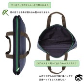 トートタイプで、A4サイズを収納可能。持ち手は長めで、肩にかけて運べます。