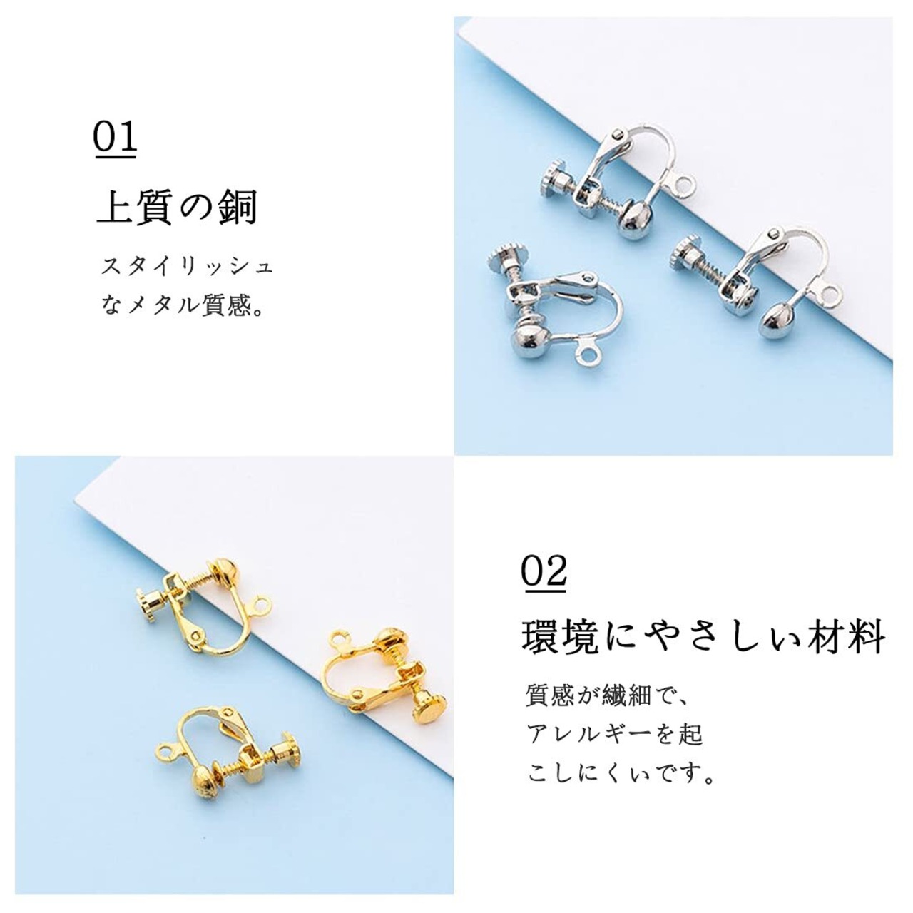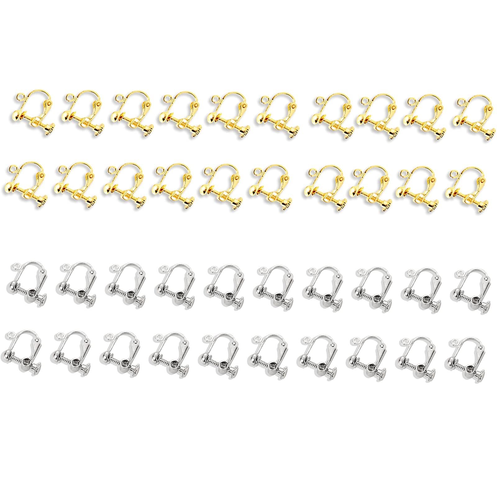 イヤリングパーツ 手芸 手作り用 DIY 基礎金具 アクセサリ ーパーツ ジュエリー 耳穴なし ネジバネ式 (ゴールド+シルバー各20個)