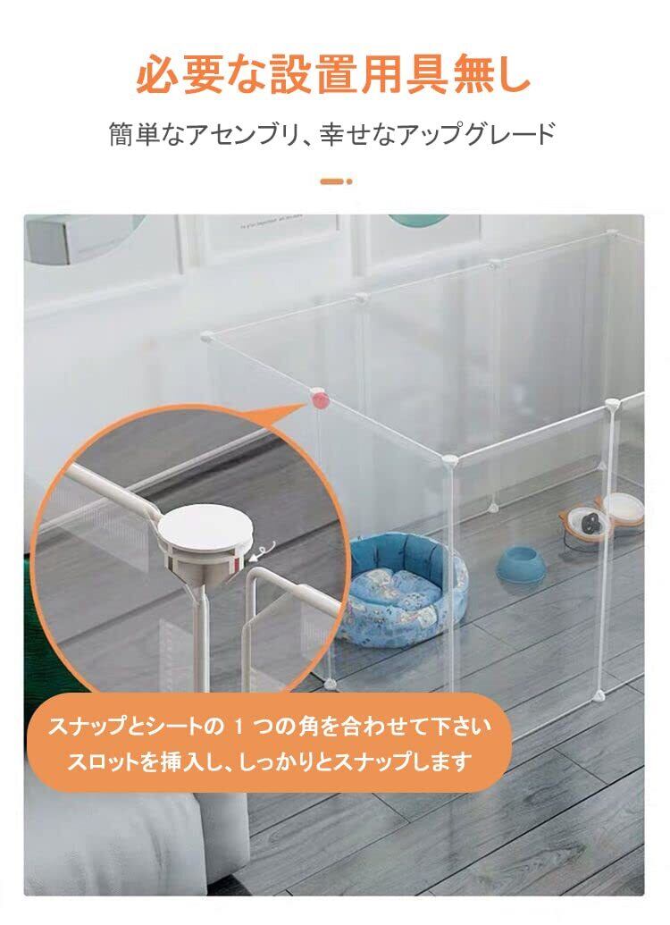 【軽量なプラスチックパネル、ペットの様子が見える】フロスト半透明のパネルを組み立てると、ペットの姿を一目で確認できるフリースペースが完成。パネルは軽量なプラスチック製のため、力仕事が苦手な人でも扱いやすいですよ.