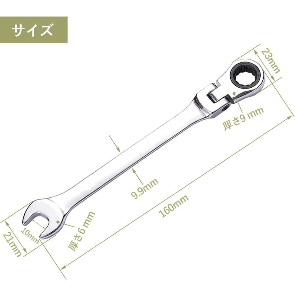 DFsucces フレックスラチェットレンチ 10MM 片口スパナ 72ギヤコンビネーションレンチ 両用ヘッド 首振りラチェットレンチ スパナ 角度調整可能