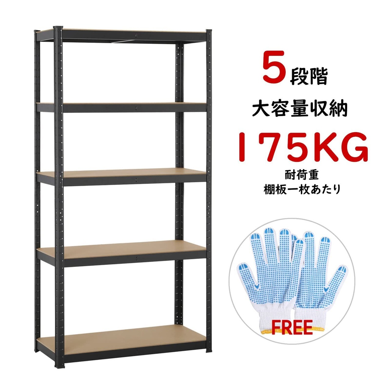 【875kgの耐荷重】この収納棚は良質の鋼材とMDF板で仕上げられているので、棚板1枚あたりは175kg(水平面に平均分布)までの重量に耐えられで、本体は875kgに達することができます。ぜひお手元にお一つ!